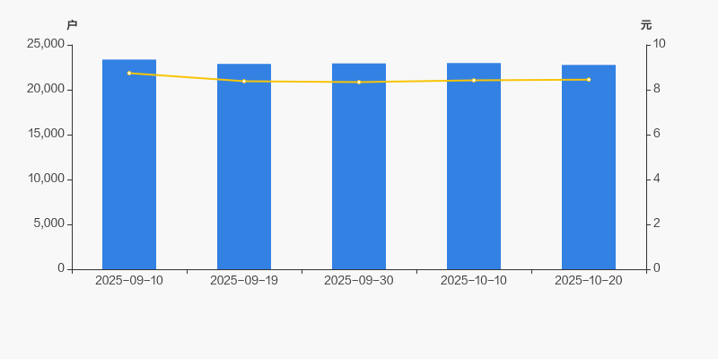 2025年9月10日至今,公司股东户数有所下降,区间跌幅为2.56%。2025年9月10日至2025年10月20日区间股价下降3.32%。