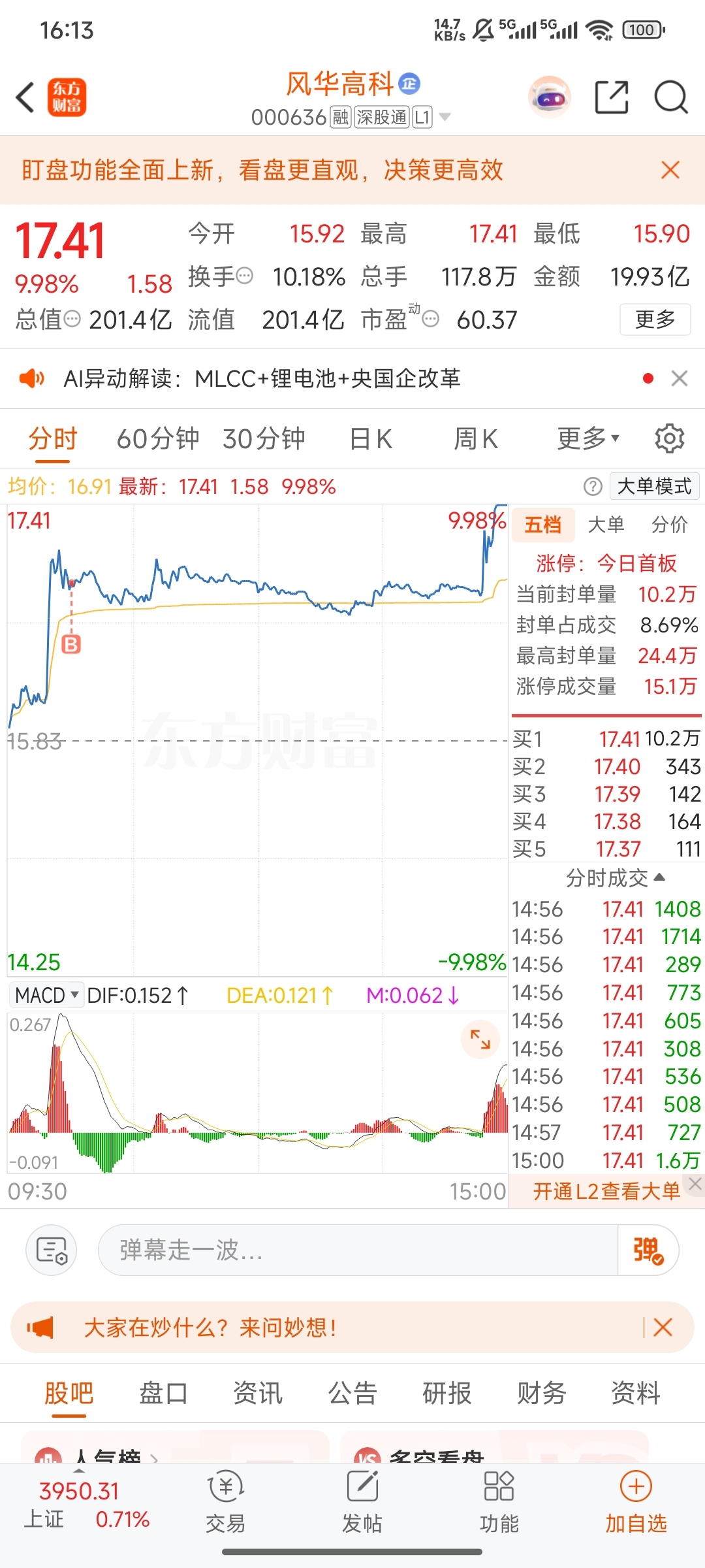 $风华高科(SZ000636)$ 本来不看好的,结果涨停了,继续不看好,因为买少了