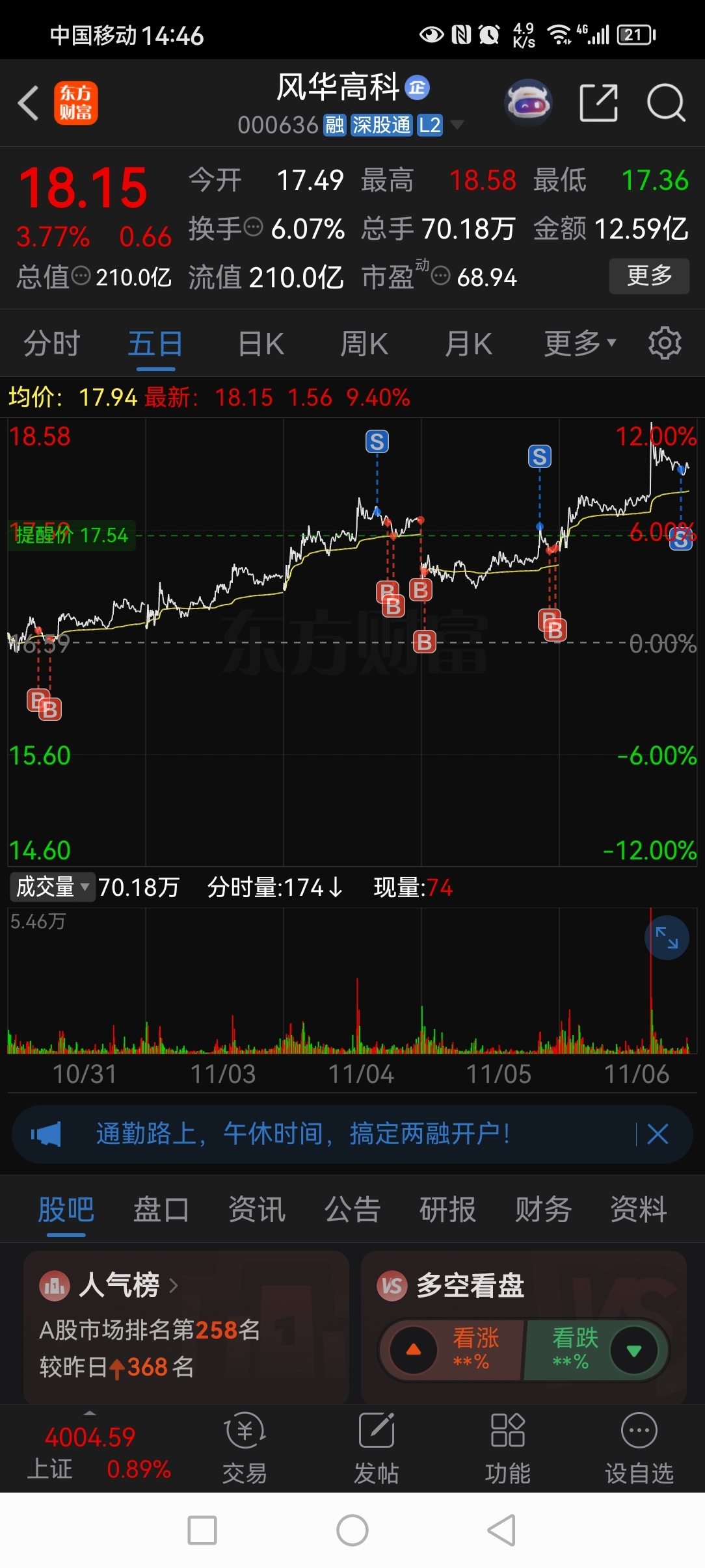 $风华高科(SZ000636)$ 压力位了,暂时先离场,突破后再回来