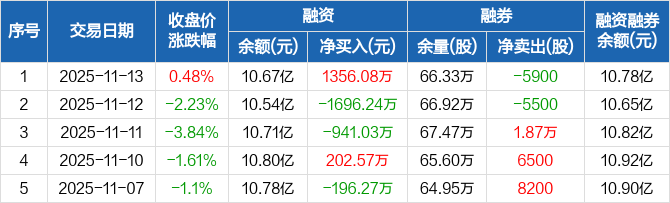 风华高科:融资净买入1356.08万元,融资余额10.67亿元(11-13)
