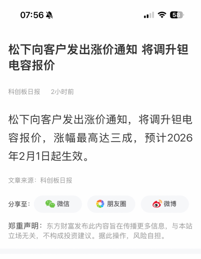 $风华高科(SZ000636)$ 松下钽电容也涨价了,元器件大周期来了