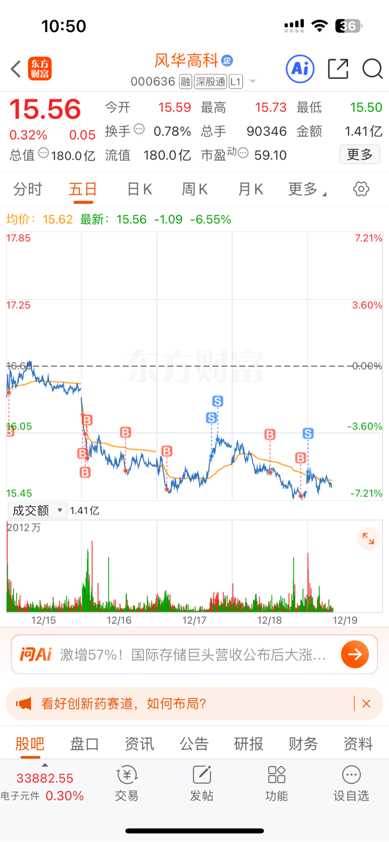 $风华高科(SZ000636)$ 等下午两点半的消息吧,别看现在涨跌家数4比1,感觉今天还是五五开的局面,早上先跑为敬,风华有能耐给我个大闭逗证明我是错的