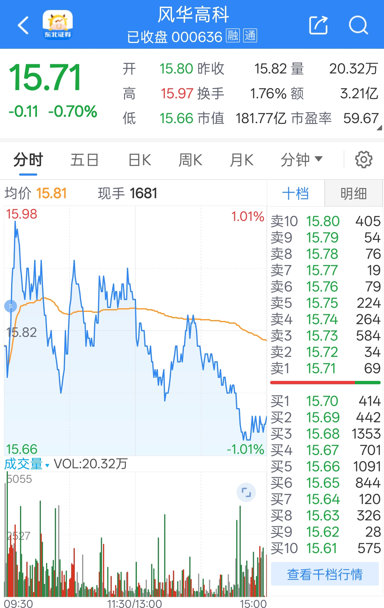 $风华高科(SZ000636)$ 最后5000底仓15.84全部清完了,本来还以为卖飞了的,没想到下午还有惊喜。