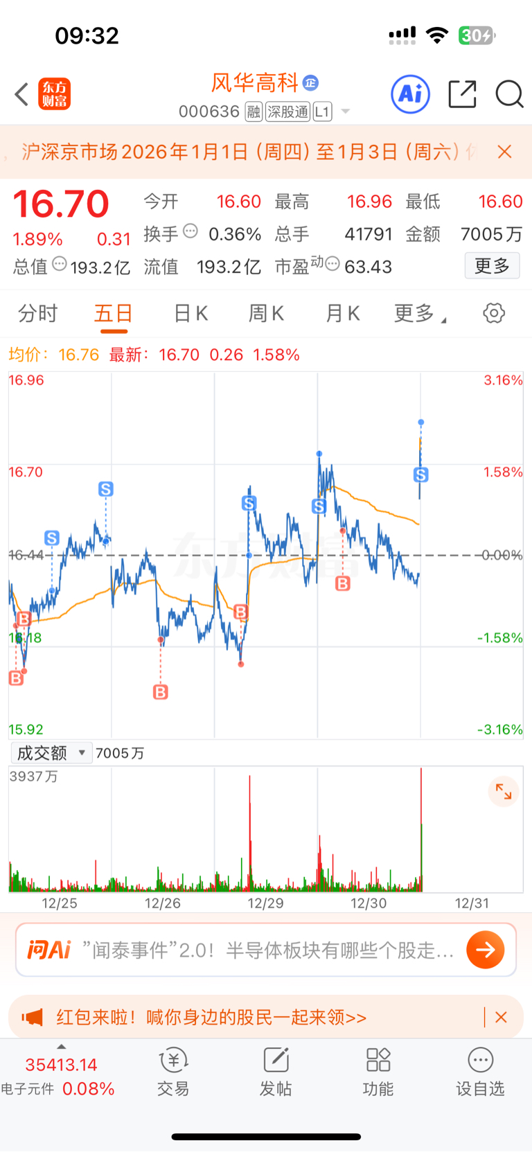 $风华高科(SZ000636)$ 1682走一笔,来来来,看诸位手快手慢了哈,主力没钱只能搞偷袭