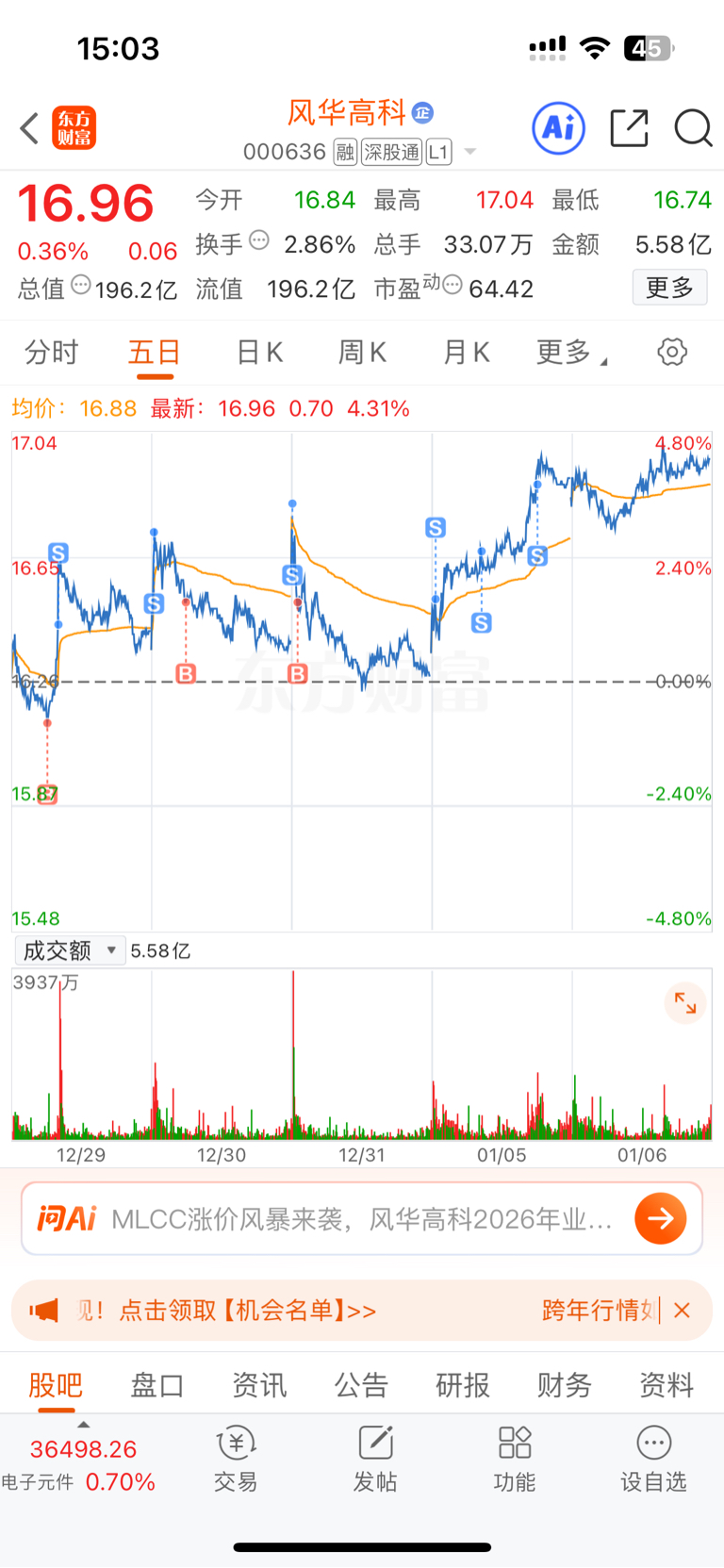 $风华高科(SZ000636)$ 今日无操作,反正账户能红就行!六分钱也是爱,加油!