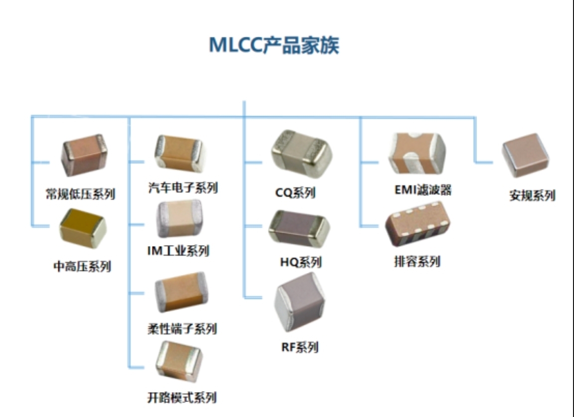 国内老牌MLCC龙头,车规产品覆盖-55℃~125℃宽温范围,工业级和汽车级MLCC通过AEC-Q200认证,应用于车载电源、ADAS系统等场景。:FH系列车规MLCC(如FH1608B102C)。