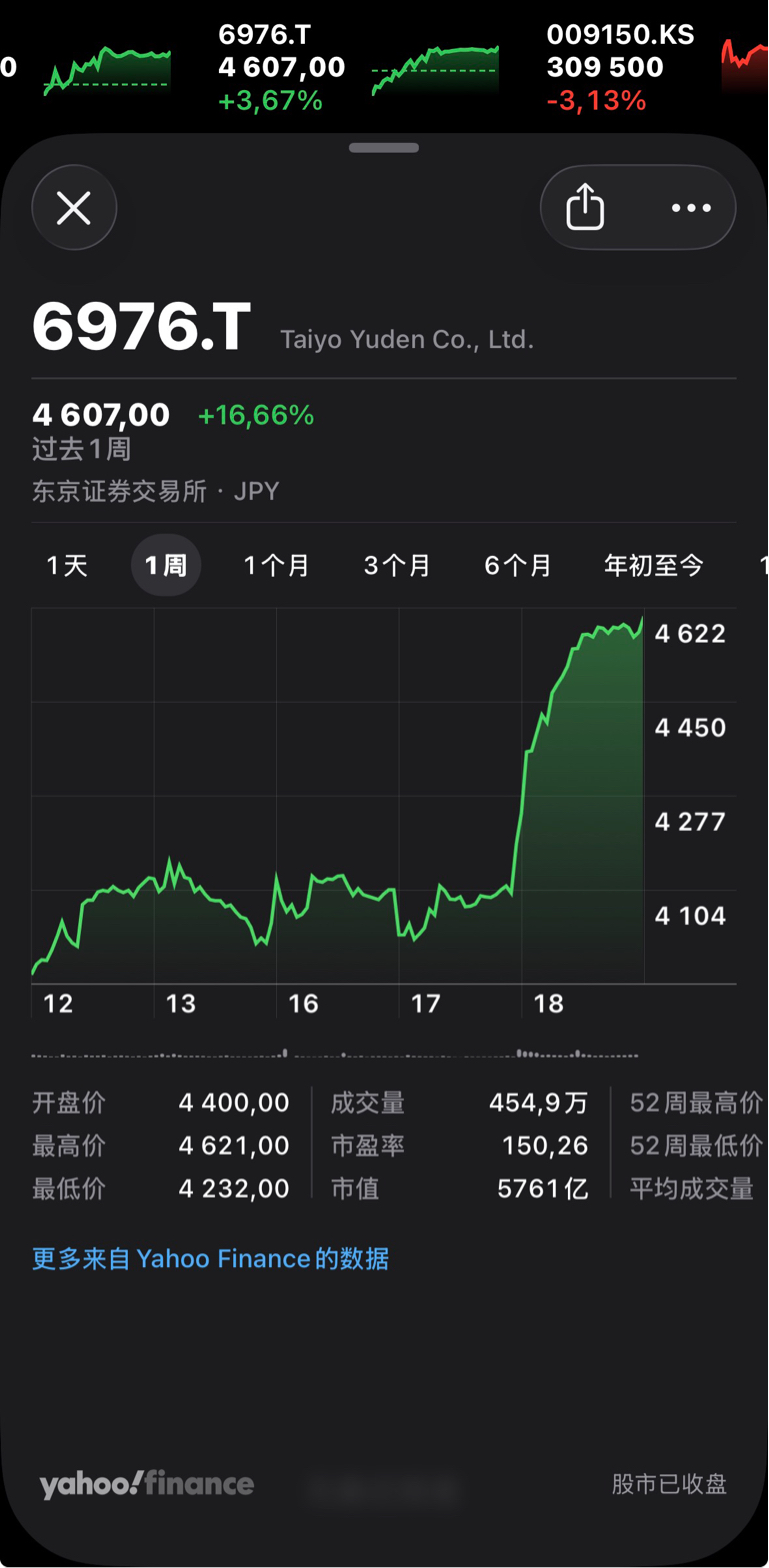 $风华高科(SZ000636)$ 友商太阳诱电一周16点,最近两天11点