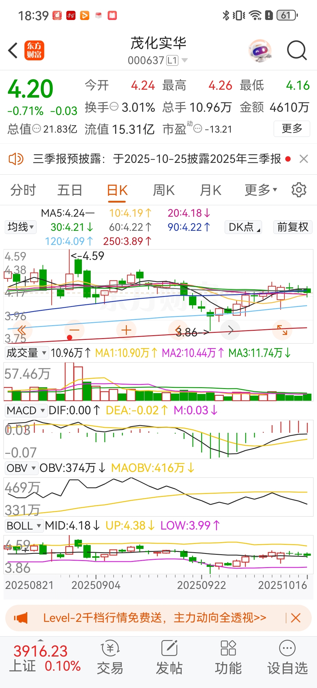 $茂化实华(SZ000637)$ 放量调整,大户做T,等4元以下!!!
