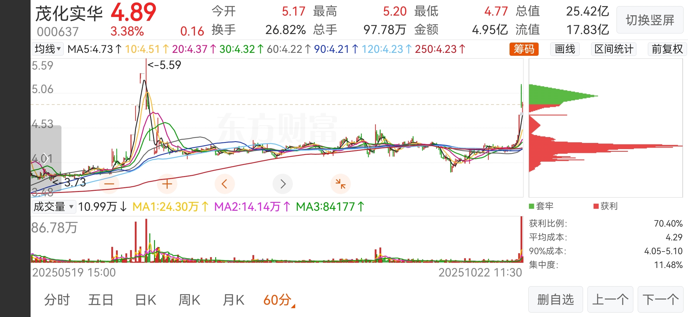 $茂化实华(SZ000637)$ 从30分钟,60分钟,120分钟和日线筹码峰分析,这波行情不是“老庄”所为,更象是有实力机构进来“大鱼吃小鱼”,如果是分析的透彻正确下午会封板。