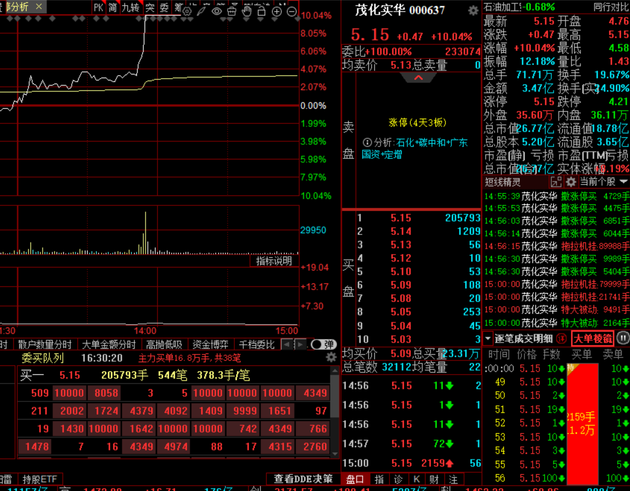 24日 茂化实华 壮观收盘,周一如何开盘乃走势?