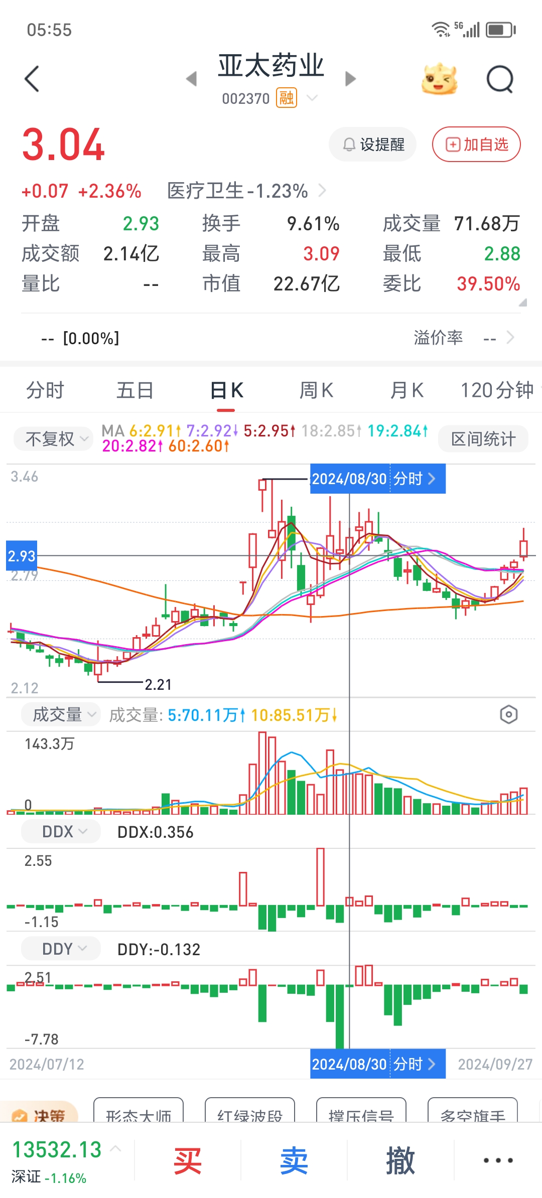 亚太药业的庄家在去年套在3块位置,同样是几个涨停板20天线60天线位置。