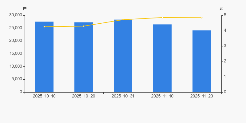 2025年10月10日至今,公司股东户数显著下降,区间跌幅为12.35%。2025年10月10日至2025年11月20日区间股价上涨13.85%。