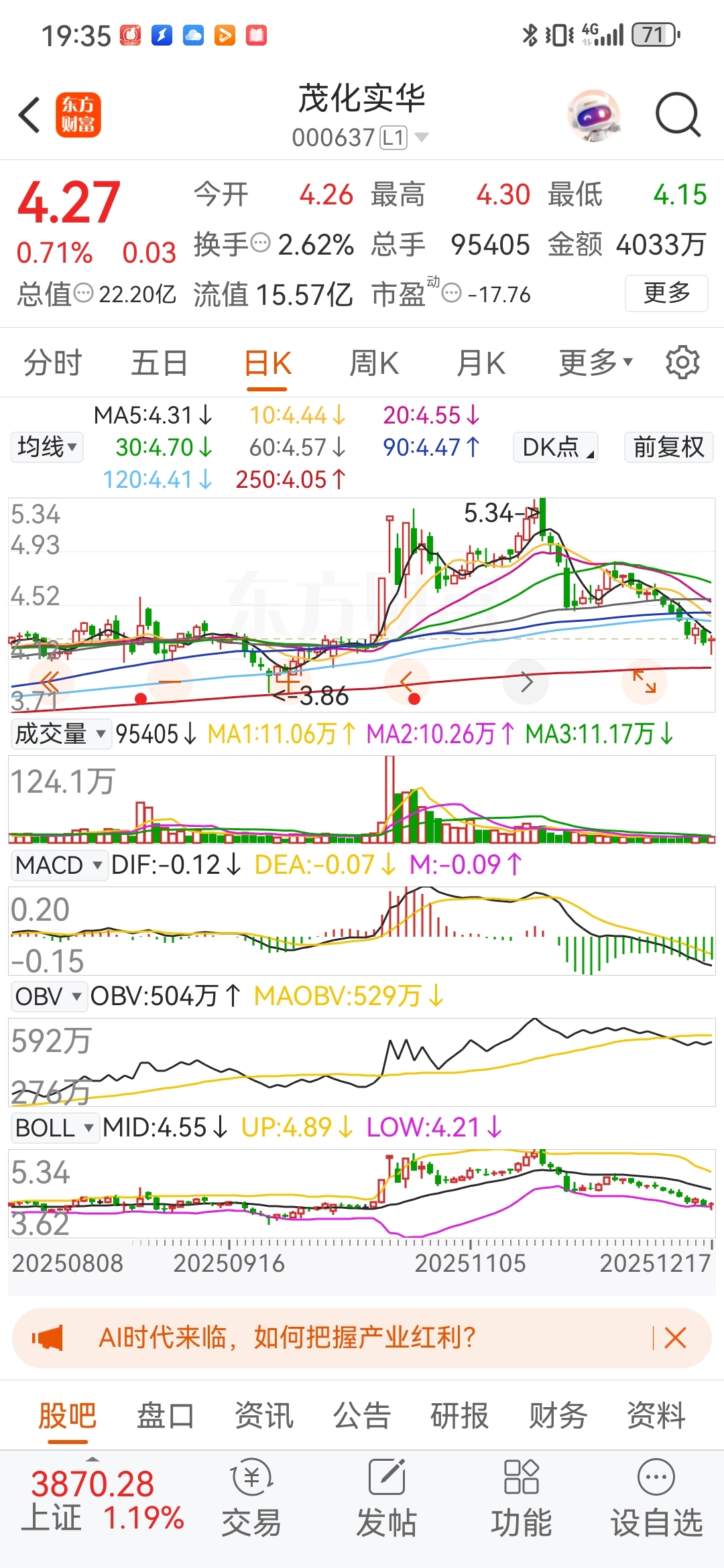 $茂化实华(SZ000637)$ 忍住,再忍忍。。。。。。等破4!