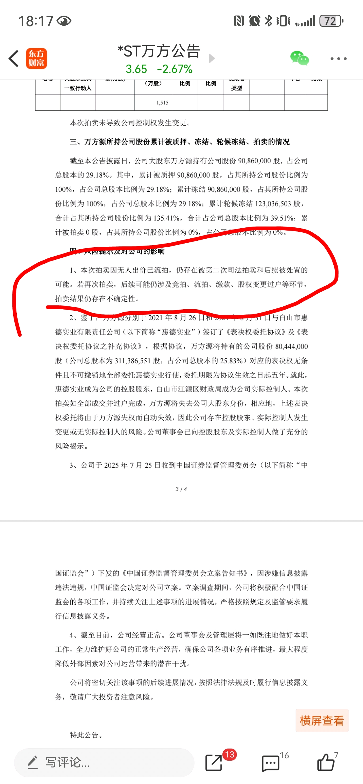 从公司公告中可以看出,没有第三次拍卖了,第一次流拍,公司公告说被第二次拍卖及后续处置的可能以及涉及竞拍流拍缴款等不确定因素,第二次流拍表述有可能被法院执行其他司法程序,两次表述完全不同,大家仔细品,而且两次只报名不出价 说明什么,说明报名是防御性手段,防止意外被拍走,这个其实已经有人看中了,现在也是最后的下杀