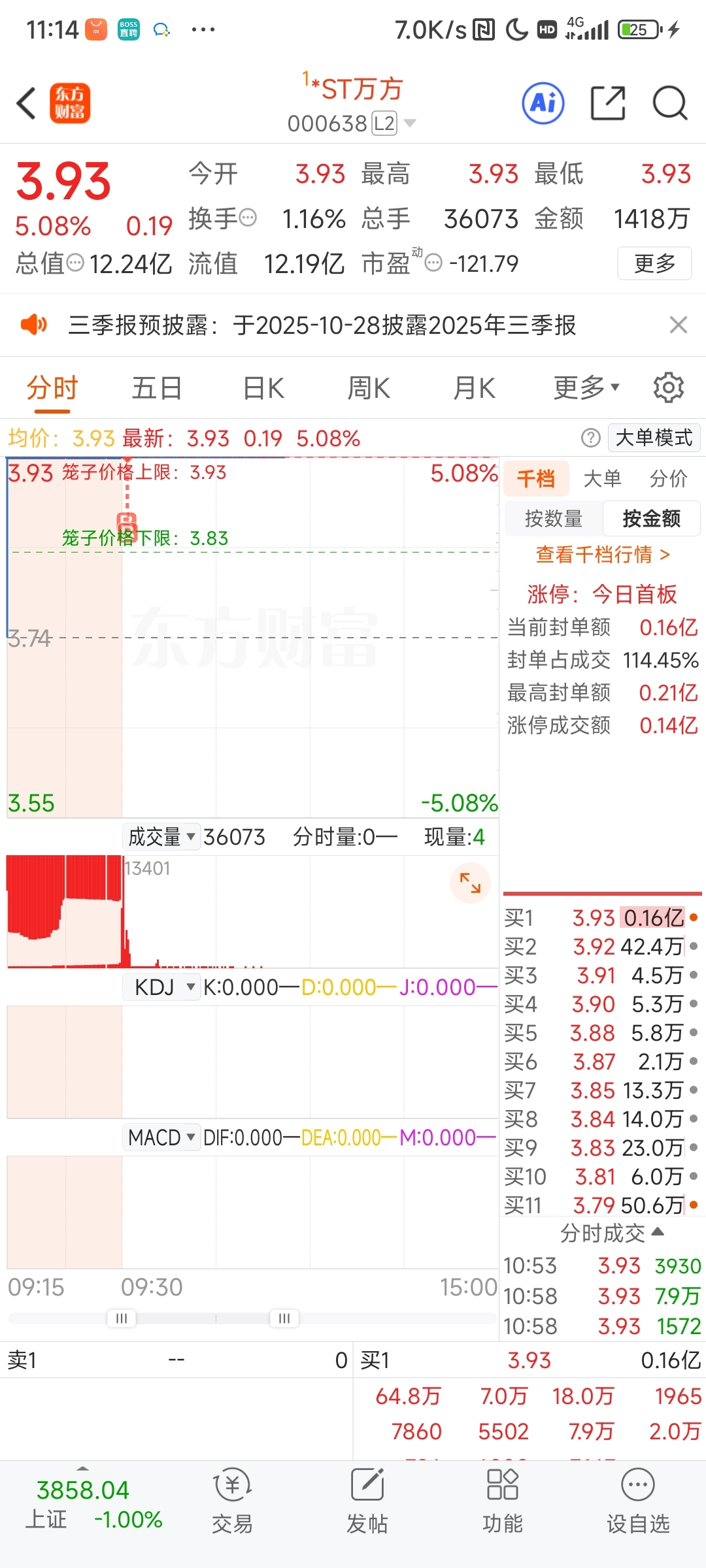 $*ST万方(SZ000638)$ 东易挂隔夜单买不进去,这个买进去了