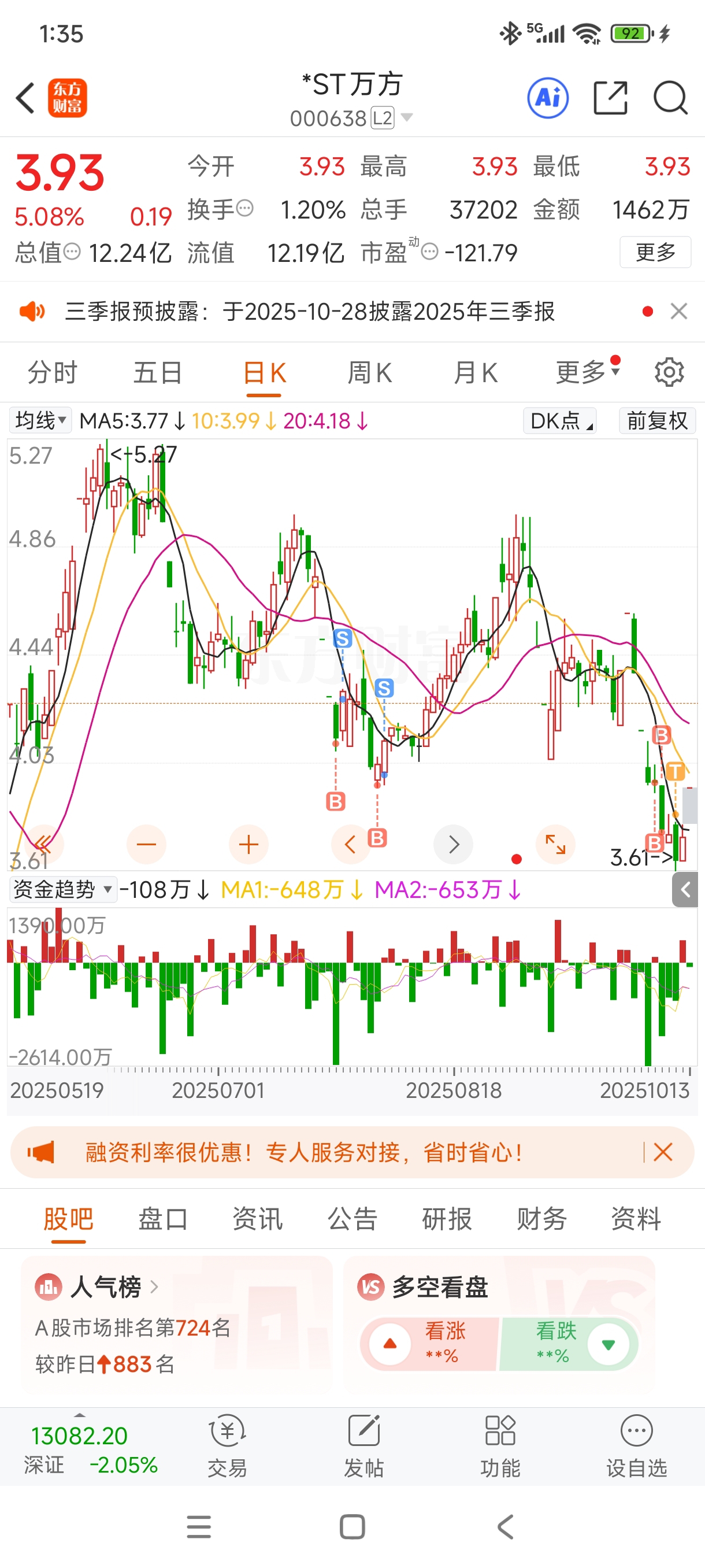 $*ST万方(SZ000638)$ 3板订龙头