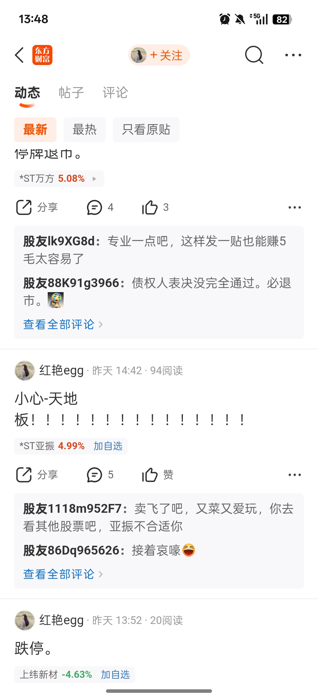 看你唱空的亚振,亚太,正平,上纬新材,万方。全是妖股,我就放心了,她是反向指标,