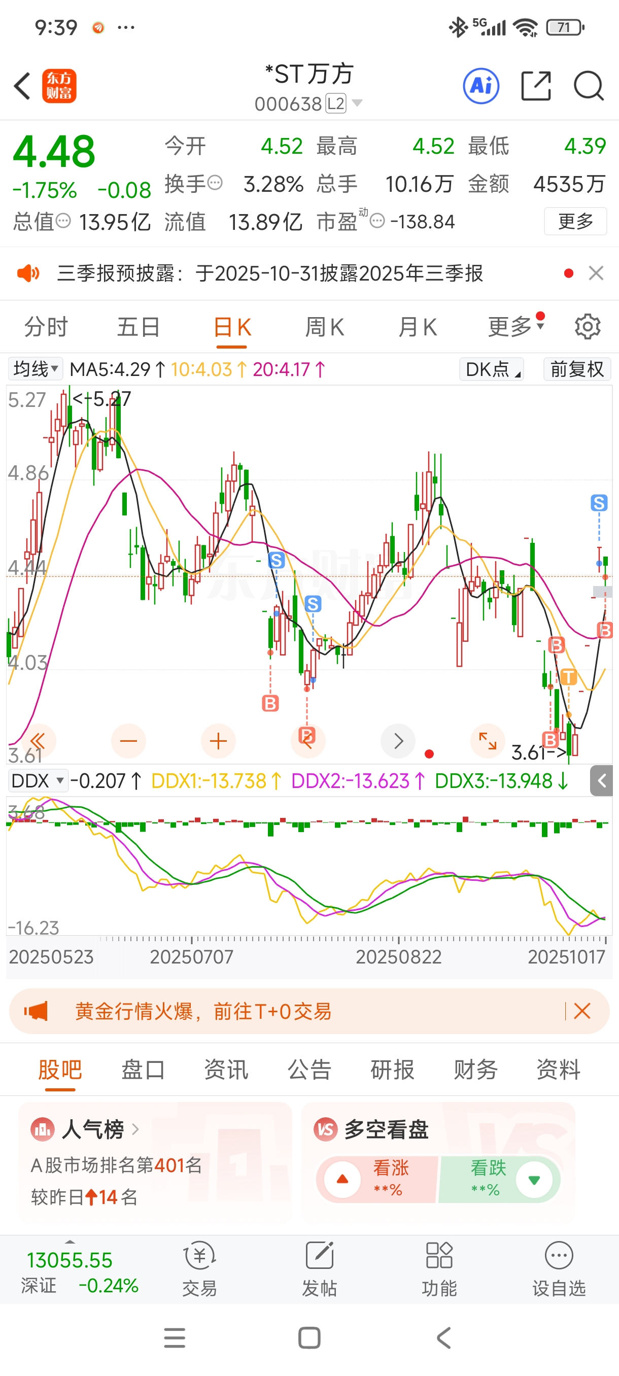 $*ST万方(SZ000638)$ 昨天出的,今天看机会回首掏了一下,谢谢主力