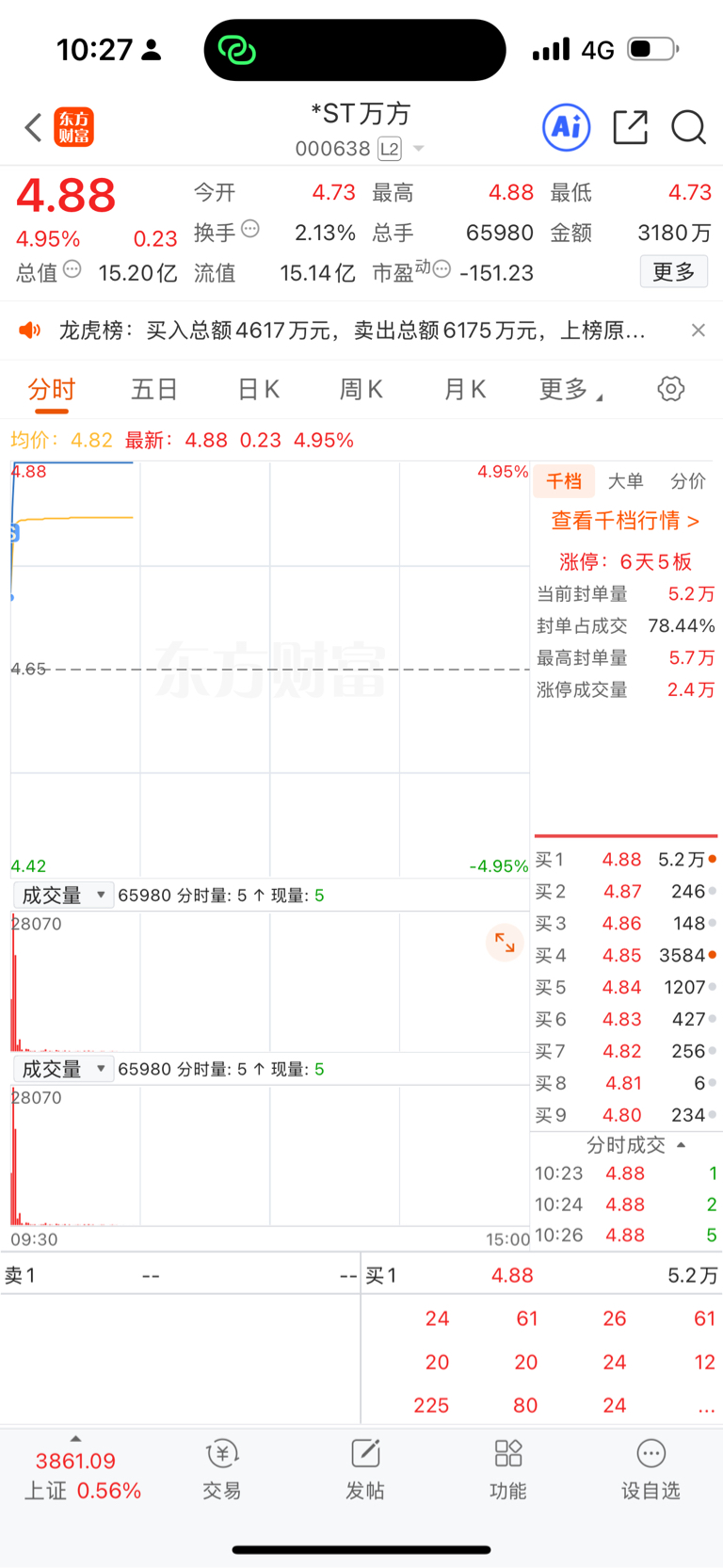 $*ST万方(SZ000638)$ 竞价卖了万方,买了大连热电,虽然大连热电也涨了五个点!但是我还不如不操作。哎,希望st万方明天能洗盘大跌,让我重新上车。。虽然说万方的新控股人资产上万亿,但是又不一定会注入。$*ST正平(SH603843)$