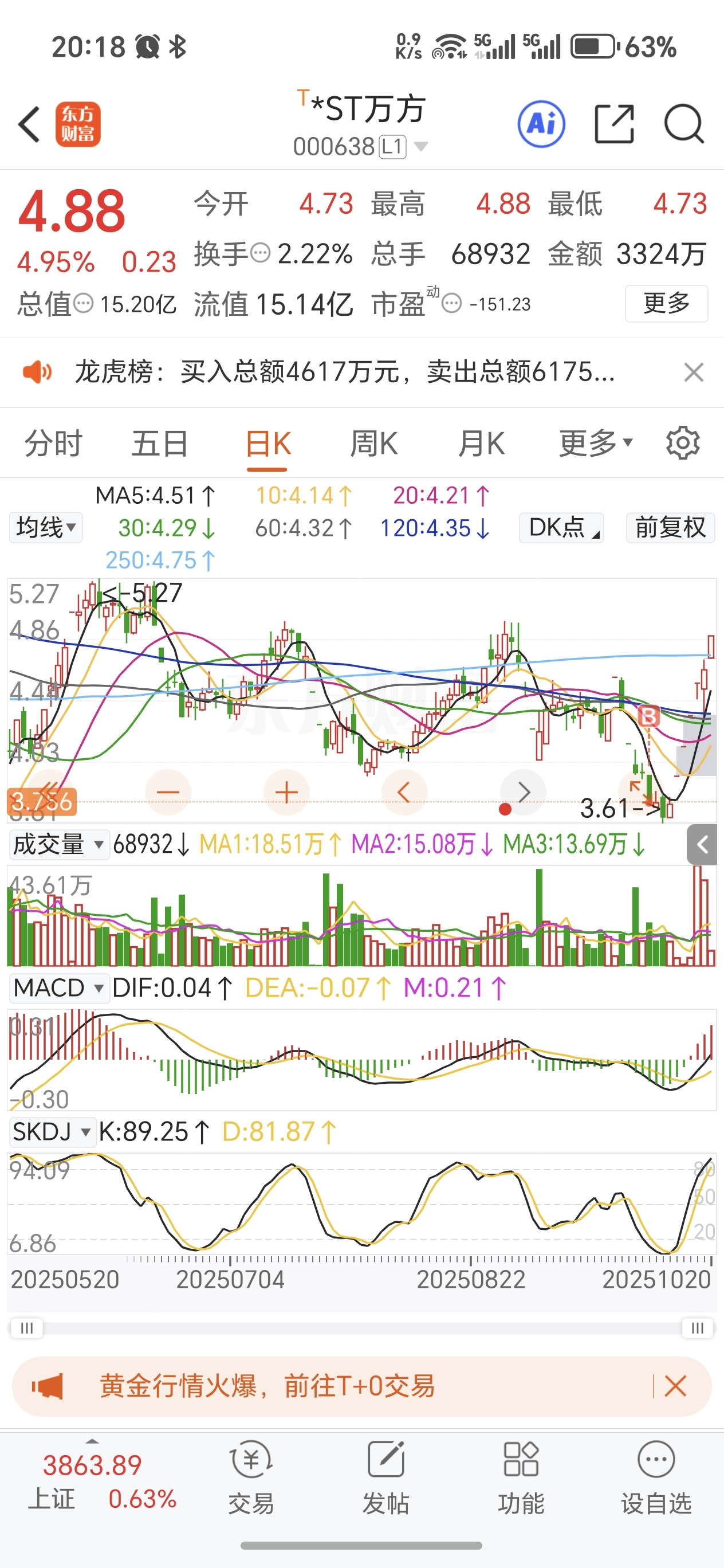$*ST万方(SZ000638)$ 可惜只建了个底仓,百分2的仓位都不到