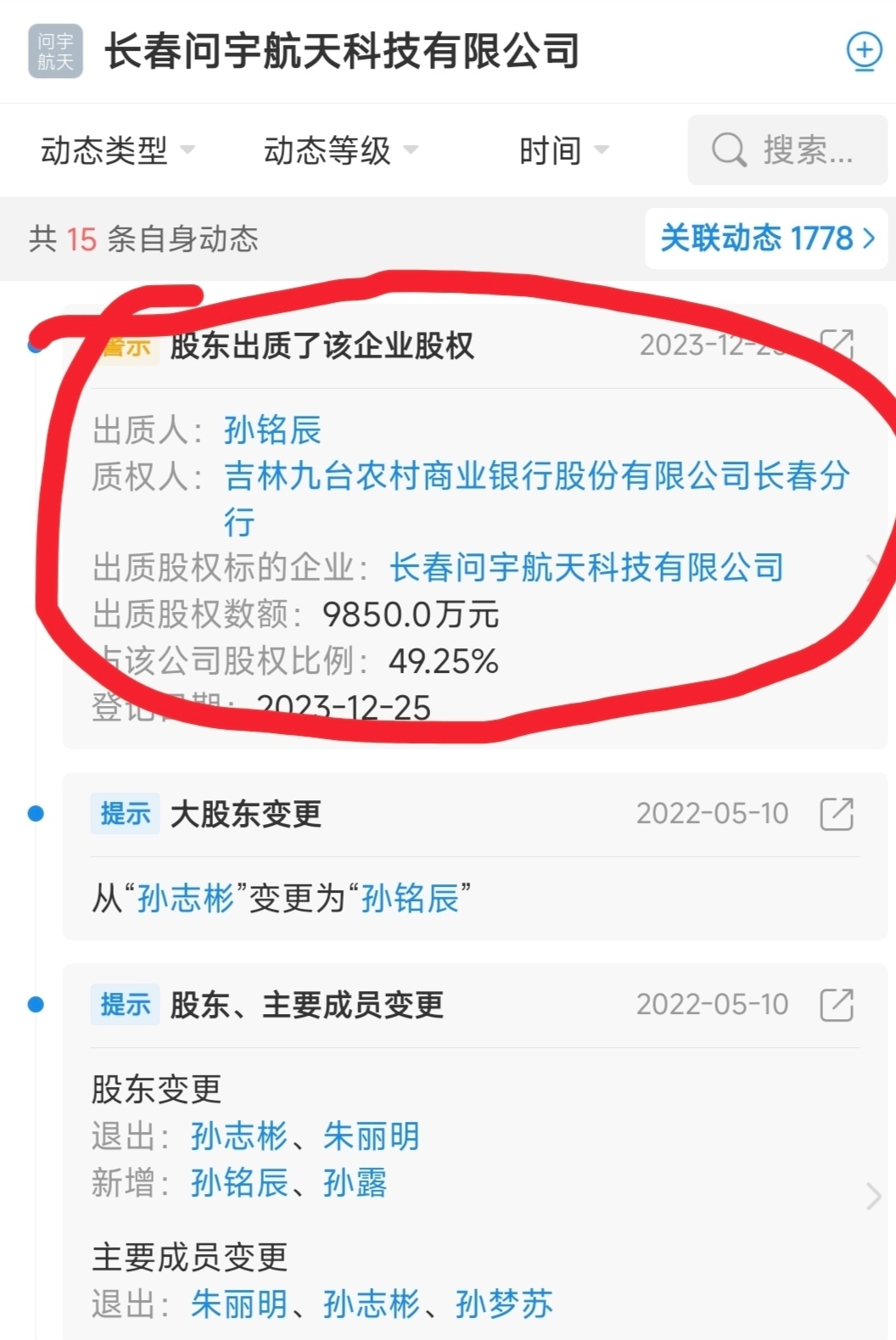 吉林金控制九台银行,九台银行手上有10%长光卫星股权,而且现在还在打官司