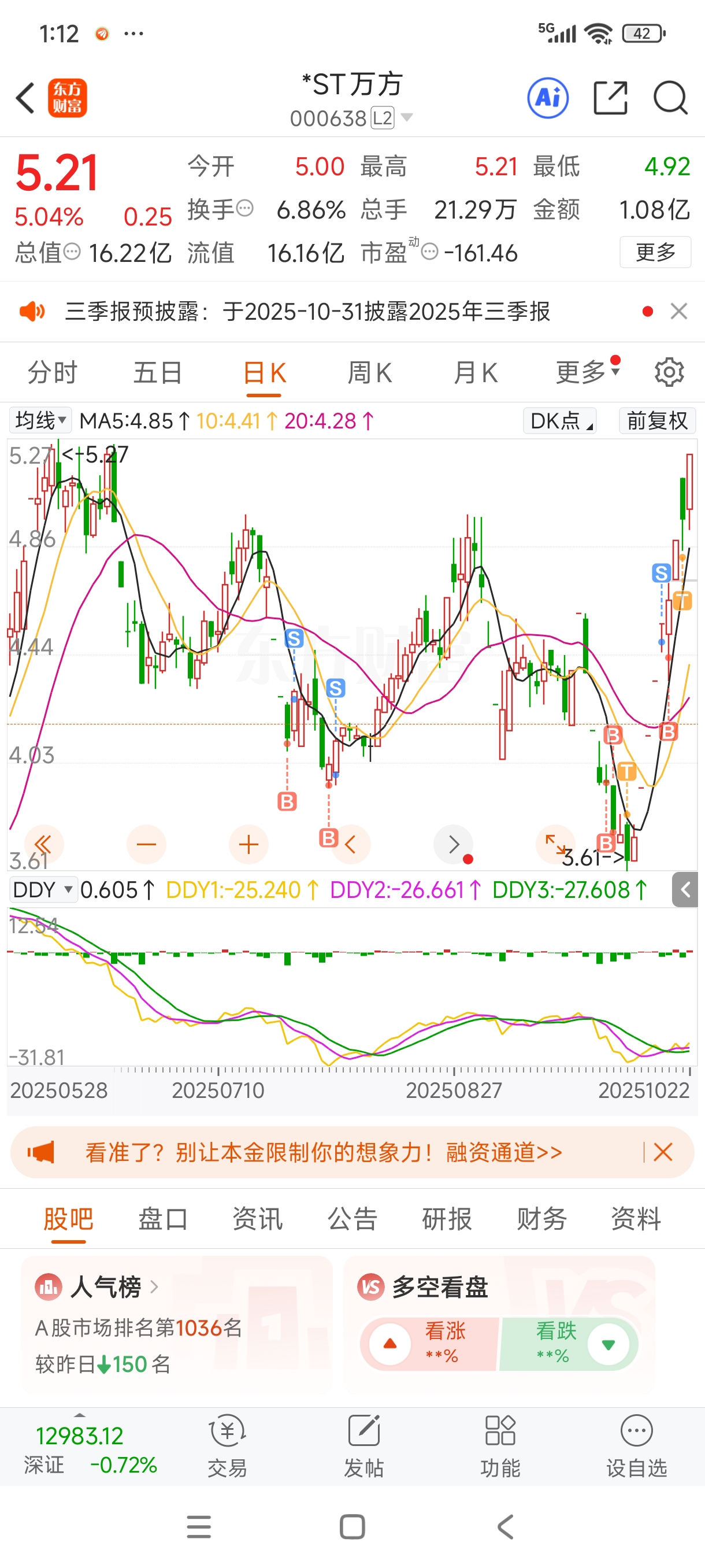 $*ST万方(SZ000638)$ 走出新趋势了,没动