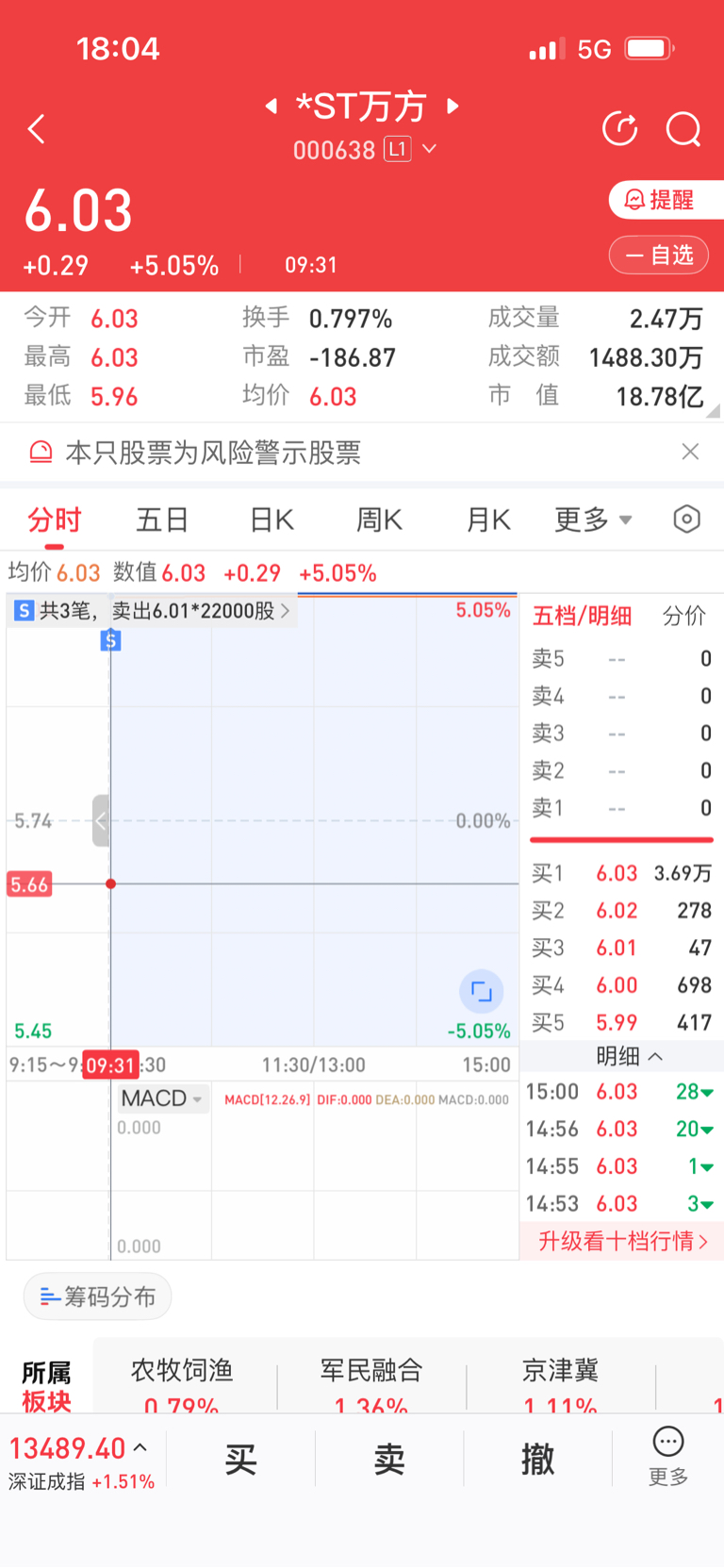 $*ST万方(SZ000638)$ 明天还有机会进吗