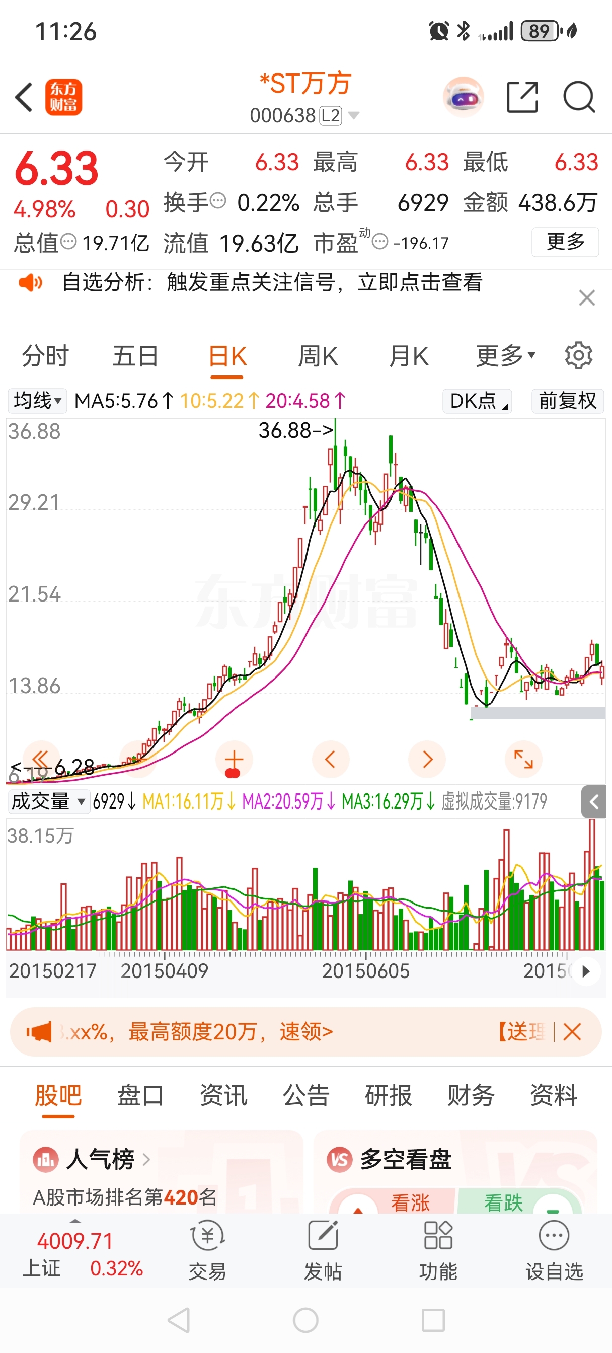 $*ST万方(SZ000638)$ 万方如果年底前能到36,那就太爽了。