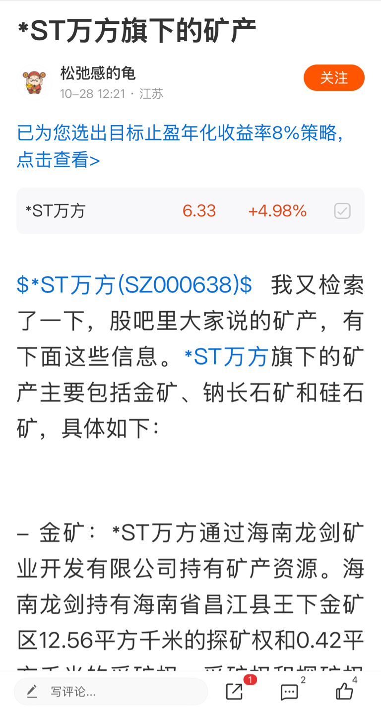 $*ST万方(SZ000638)$ 这种拿豆包忽悠人接盘的智帐是怎么放出来的,这些信息都不去核实就来乱发?这些公司现在和万方有鸡毛关系?你说万方有矿,我还说有宇宙飞船呢,现在买入兆万亿市值指日可待!!!!