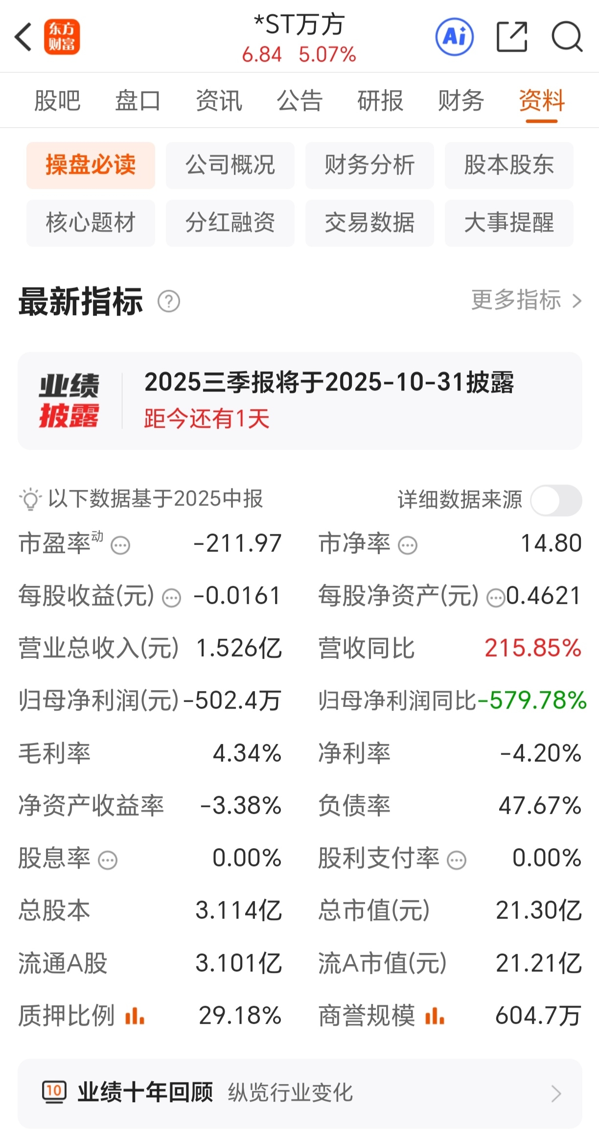 $*ST万方(SZ000638)$ 今天晚上100%有公告明天上不了车了