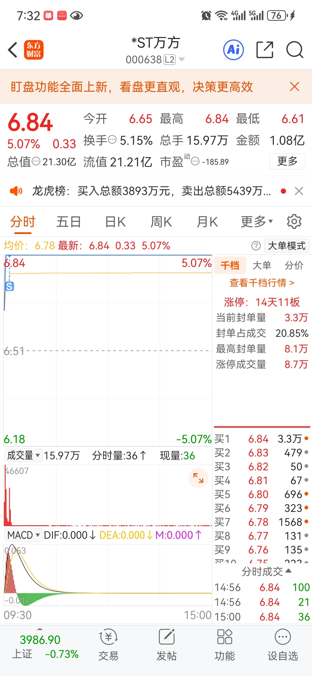 $*ST万方(SZ000638)$ 还好今天跑了,明天大概率要跌停了