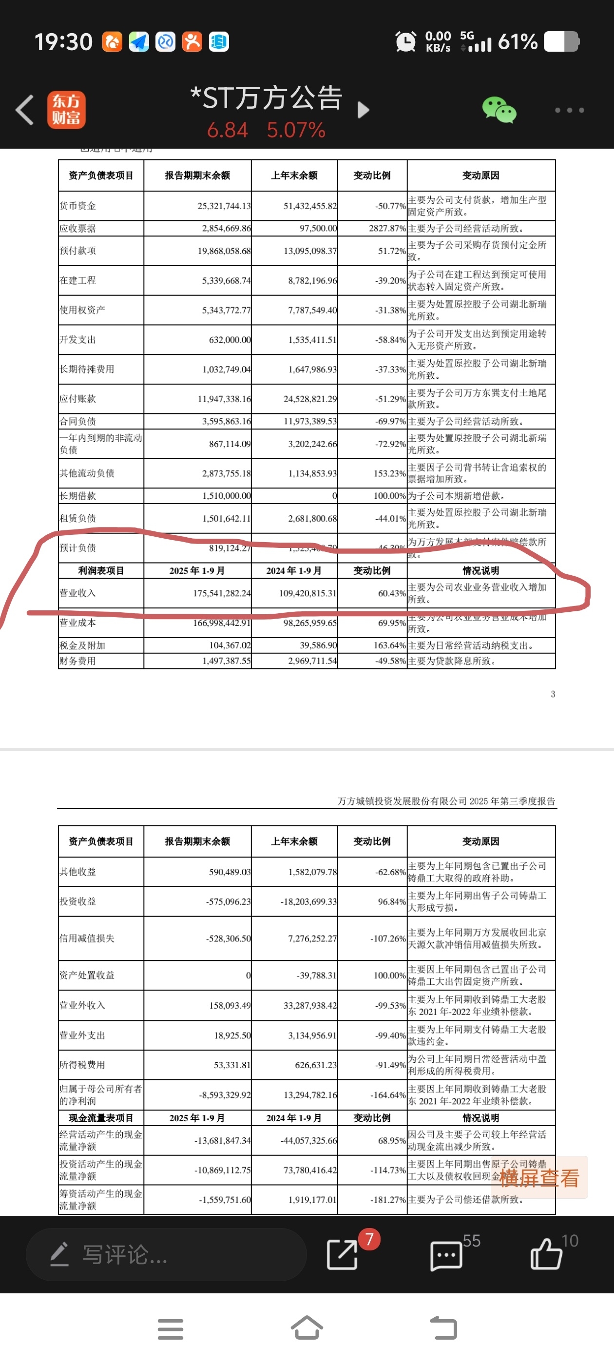 相比去年1到9月份增长了60%,去年第四季度主营业务收入2.8个亿,农产品加工业务主要体现在第四季度,保壳没问题