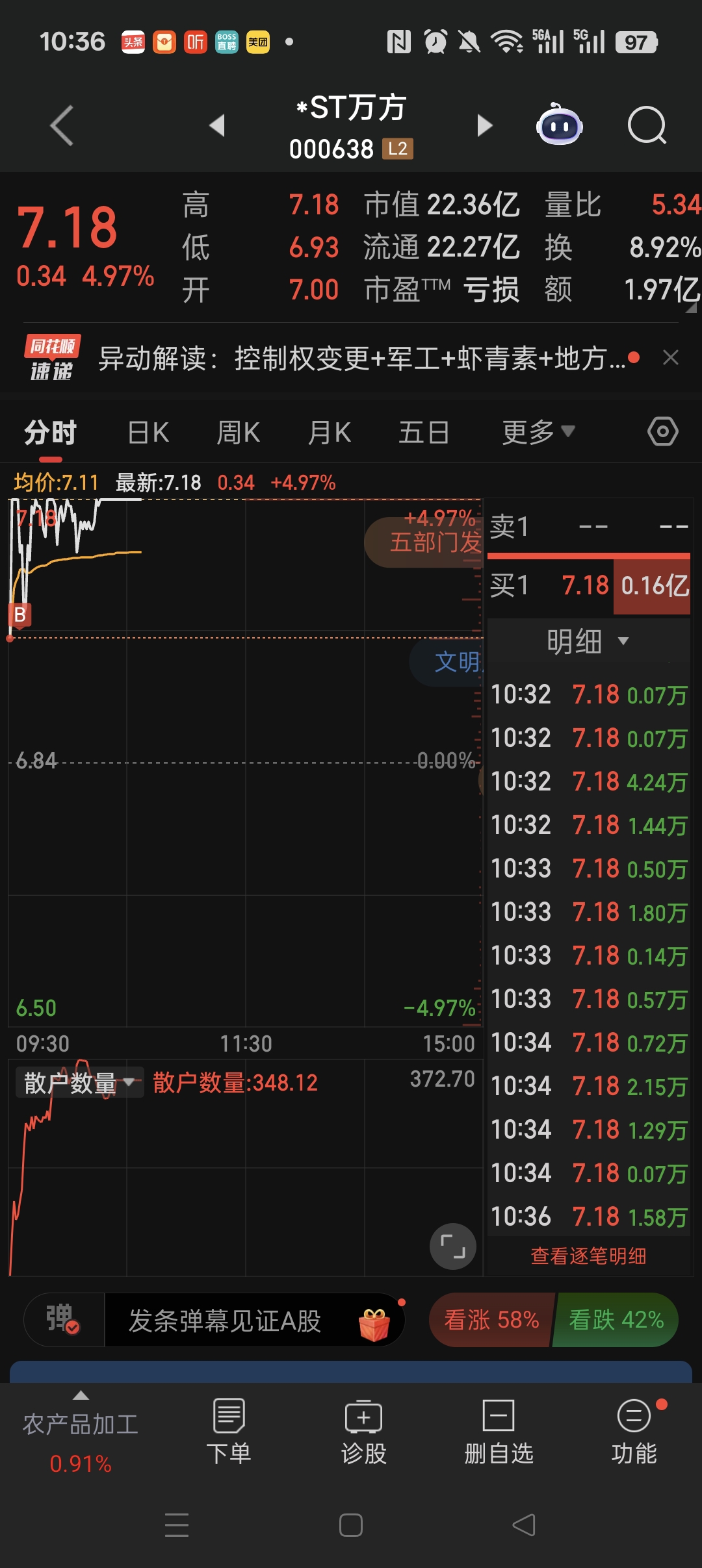 $*ST万方(SZ000638)$ 勇敢者先享受世界