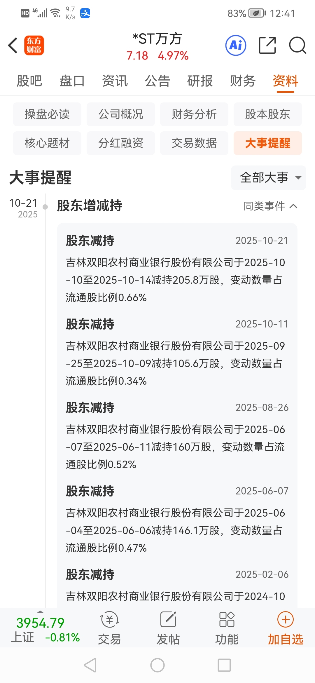 $*ST万方(SZ000638)$ 别在这整天忽悠散户接盘,国资从2月开始,一直减持到现在,还在减持!放个消息就是为了套你猴子!