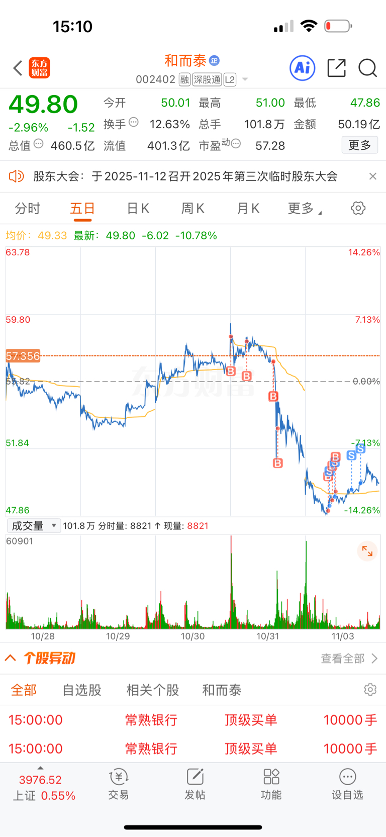 $*ST万方(SZ000638)$ 这T做的真亏。就当加仓多好。 T出来的钱去和而泰两个交易日亏了我15个点我真是醉了。