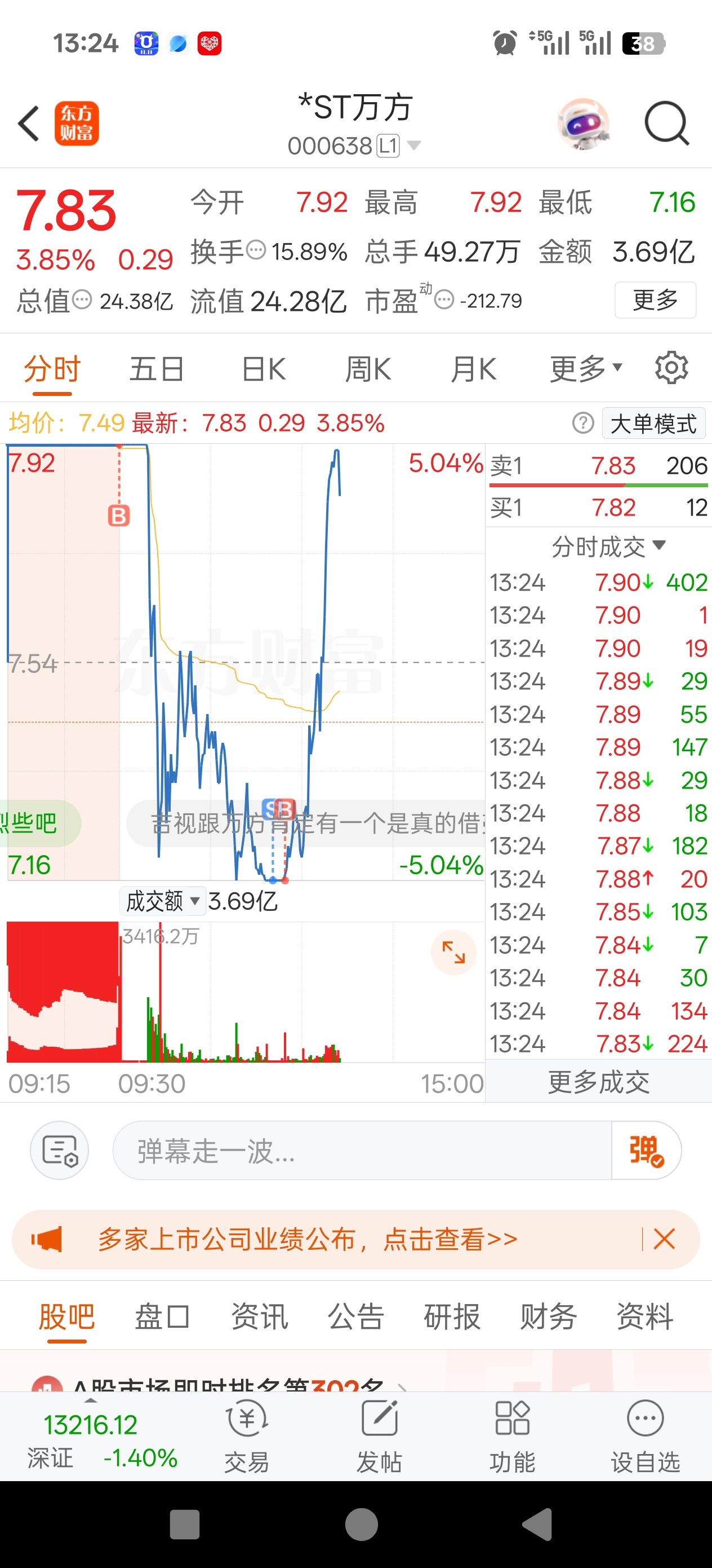 $*ST万方(SZ000638)$ 兄弟们我这是什么S B战法,跌停卖了20手,卖了后不甘心,又买回来15手,我也是醉了