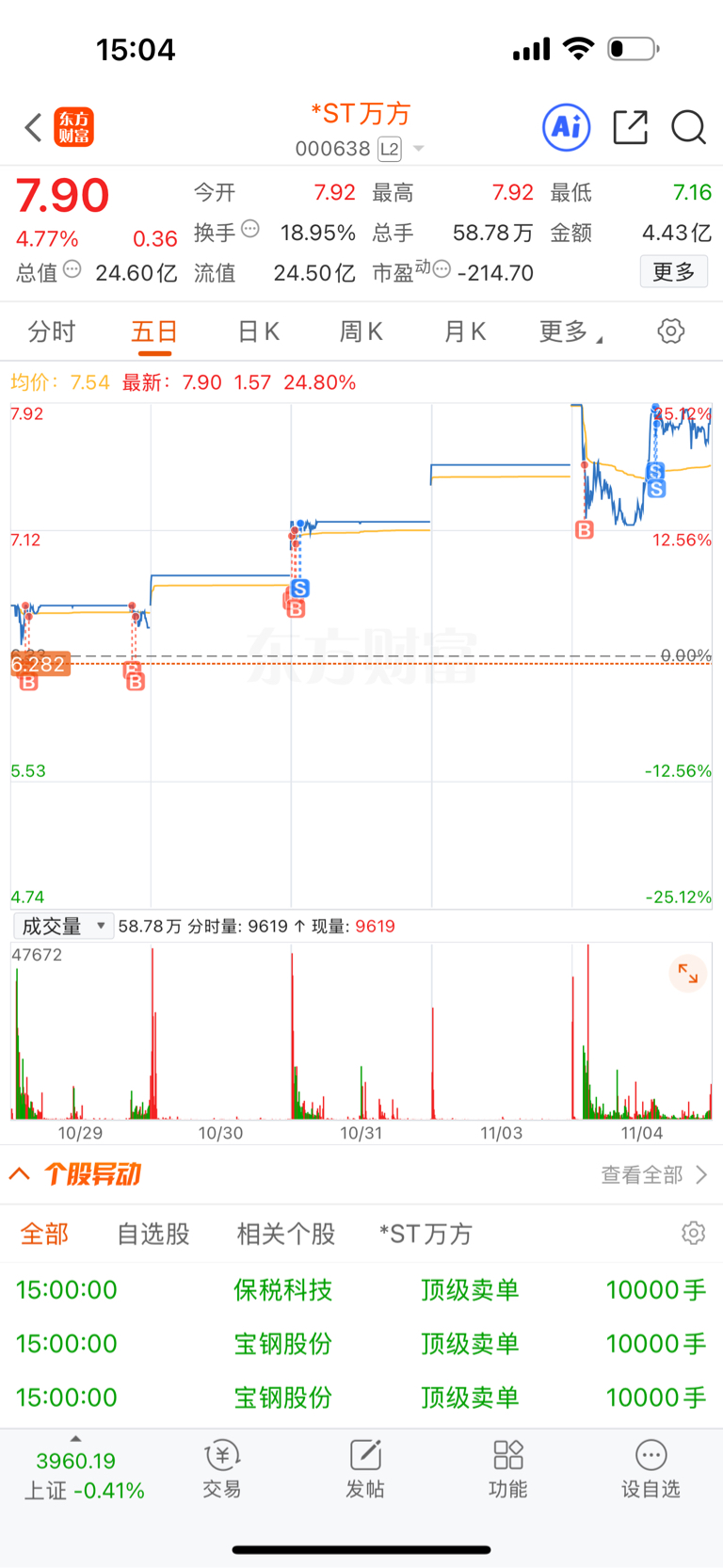 $*ST万方(SZ000638)$ 这万方 每天在板上买卖 有点拿不住 不敢了。兄弟们 给我点信念。这一天惊心动魄的 太吓人了