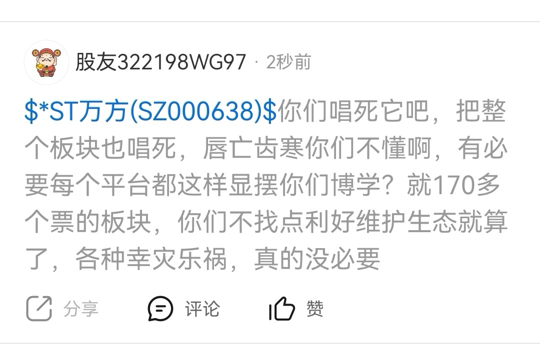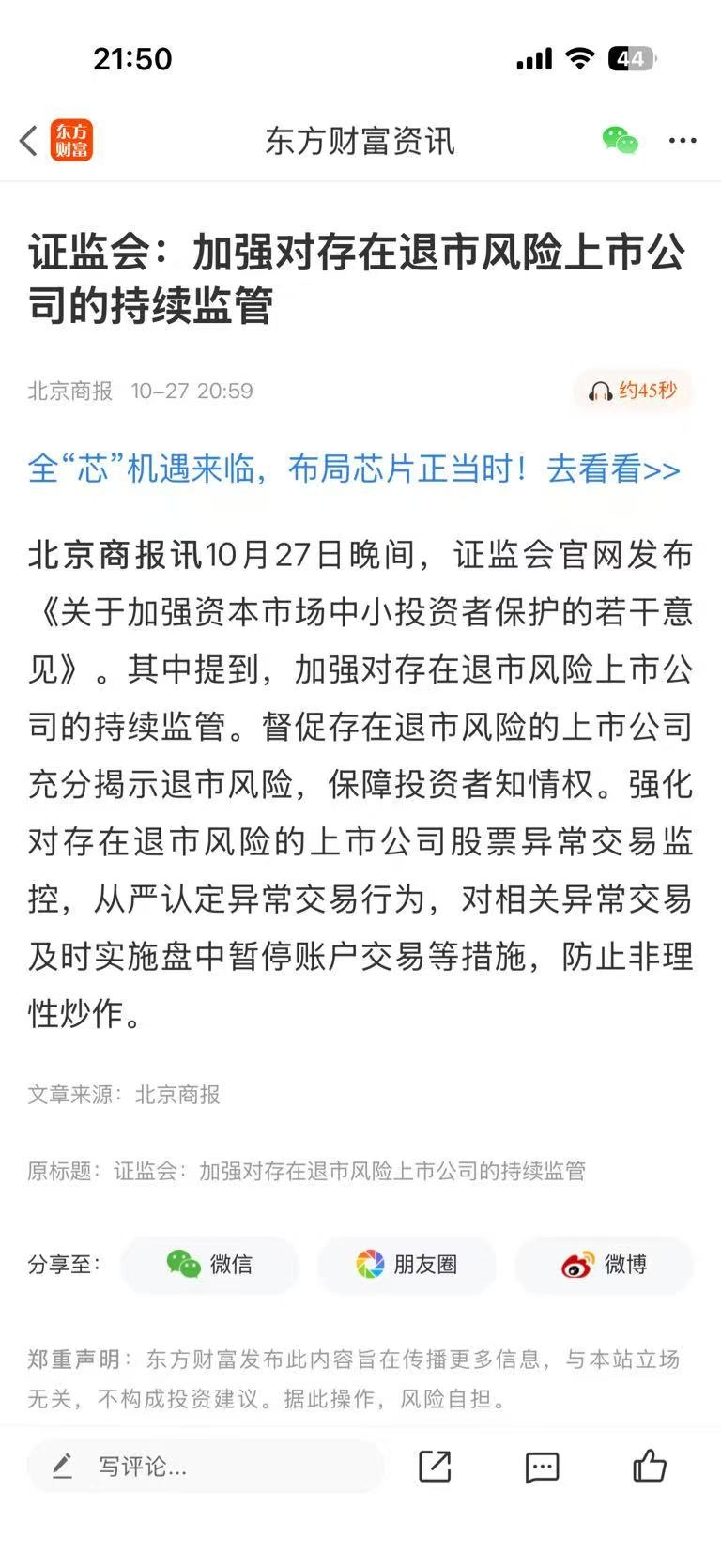 温馨提示: 1.根据《证券法》规定,禁止编造、传播虚假信息或者误导性信息,扰乱证券市场;2.用户在本社区发表的所有资料、言论等仅代表个人观点,与本网站立场无关,不对您构成任何投资建议。用户应基于自己的独立判断,自行决定证券投资并承担相应风险。《东方财富社区管理规定》