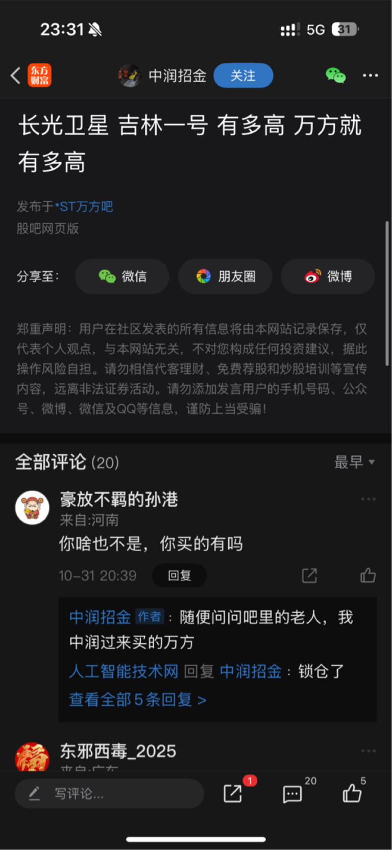 温馨提示: 1.根据《证券法》规定,禁止编造、传播虚假信息或者误导性信息,扰乱证券市场;2.用户在本社区发表的所有资料、言论等仅代表个人观点,与本网站立场无关,不对您构成任何投资建议。用户应基于自己的独立判断,自行决定证券投资并承担相应风险。《东方财富社区管理规定》