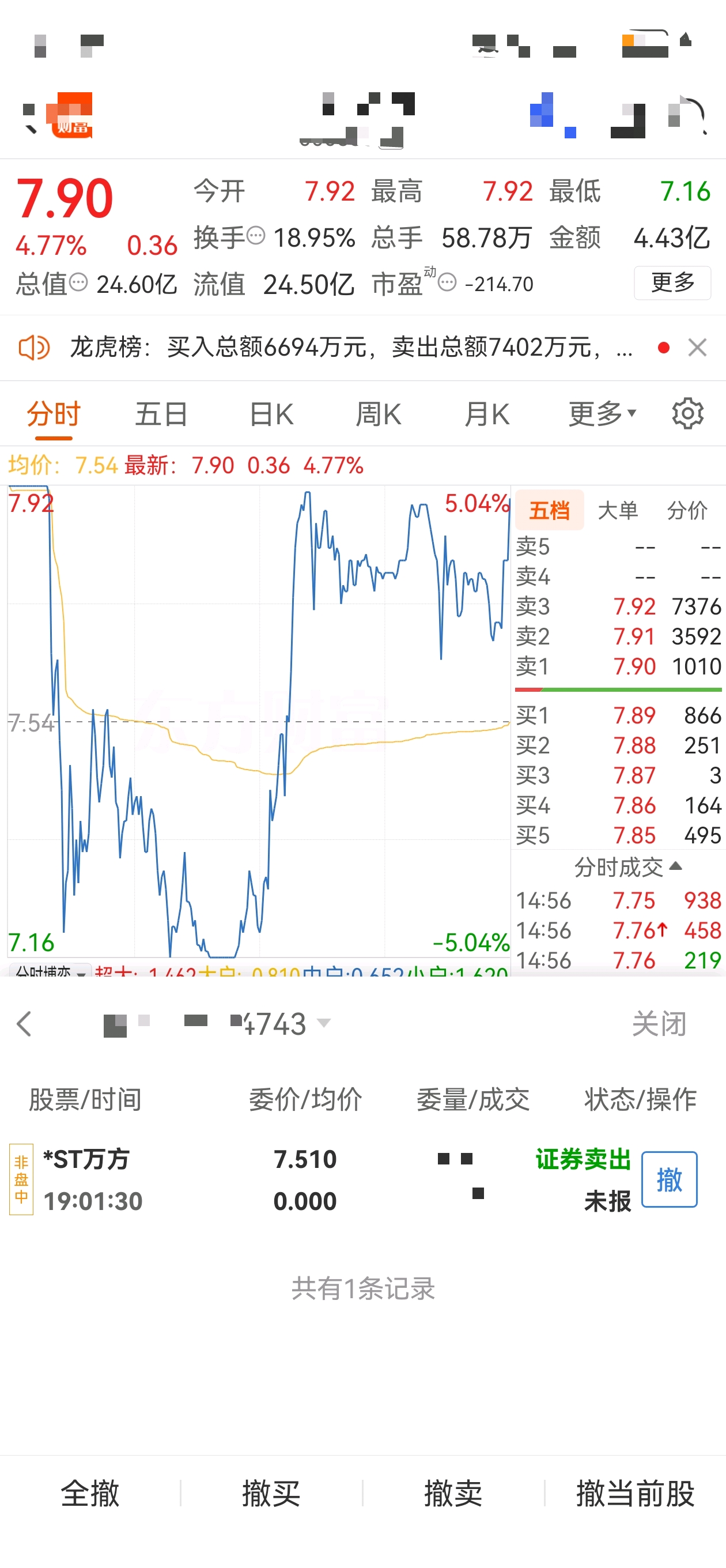 $*ST万方(SZ000638)$ 18点收益不要了,放我出去