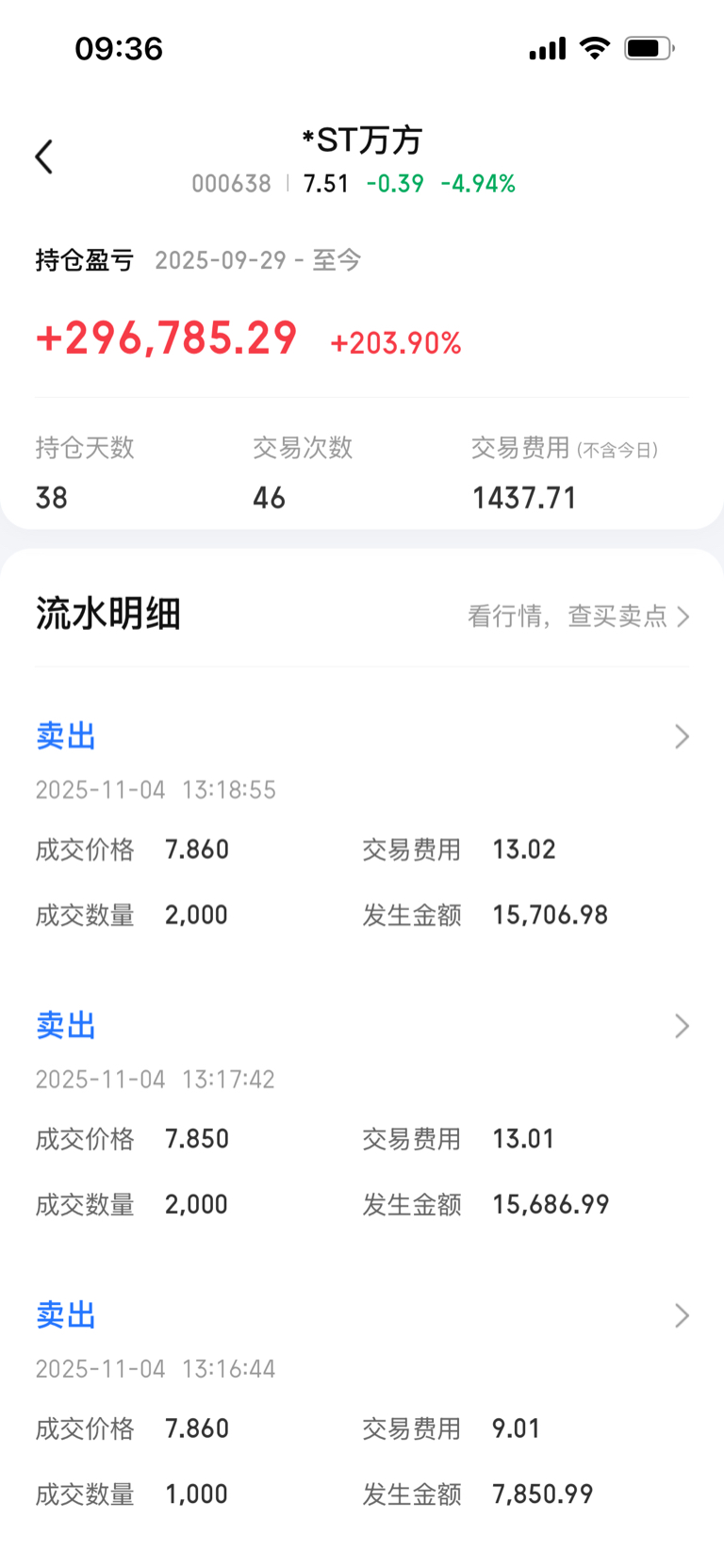 $*ST万方(SZ000638)$ 你慢慢跌,看看能不能把我这利润跌完,跌完算你厉害