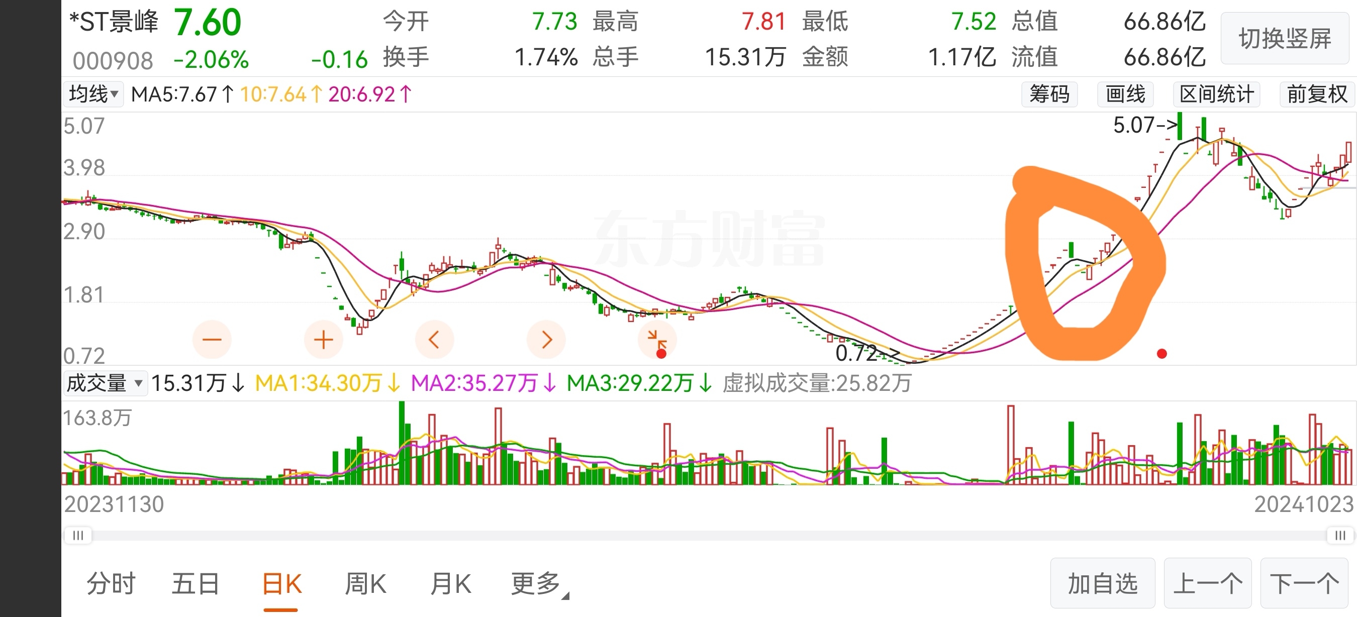 $*ST万方(SZ000638)$ 走势参考这个图,今晚九台行有公告,明天有股权过户公告
