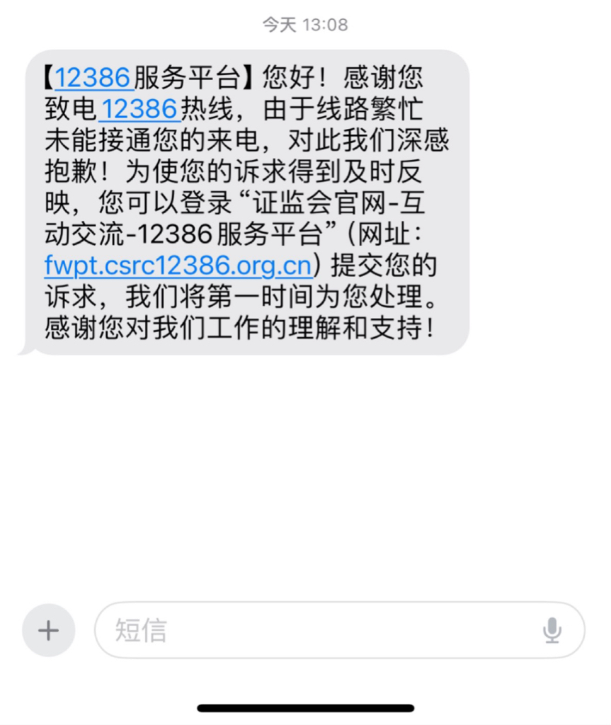 $*ST万方(SZ000638)$ 【12386服务平台】这有网址,有空自己可以填!人多力量大!成不成试一下!您好!感谢您致电12386热线,由于线路繁忙未能接通您的来电,对此我们深感抱歉!为使您的诉求得到及时反映,您可以登录“证监会官网-互动交流-12386服务平台”(网址:fwpt.csrc12386.org.cn)提交您的诉求,我们将第一时间为您处理。感谢您对我们工作的理解和支持!