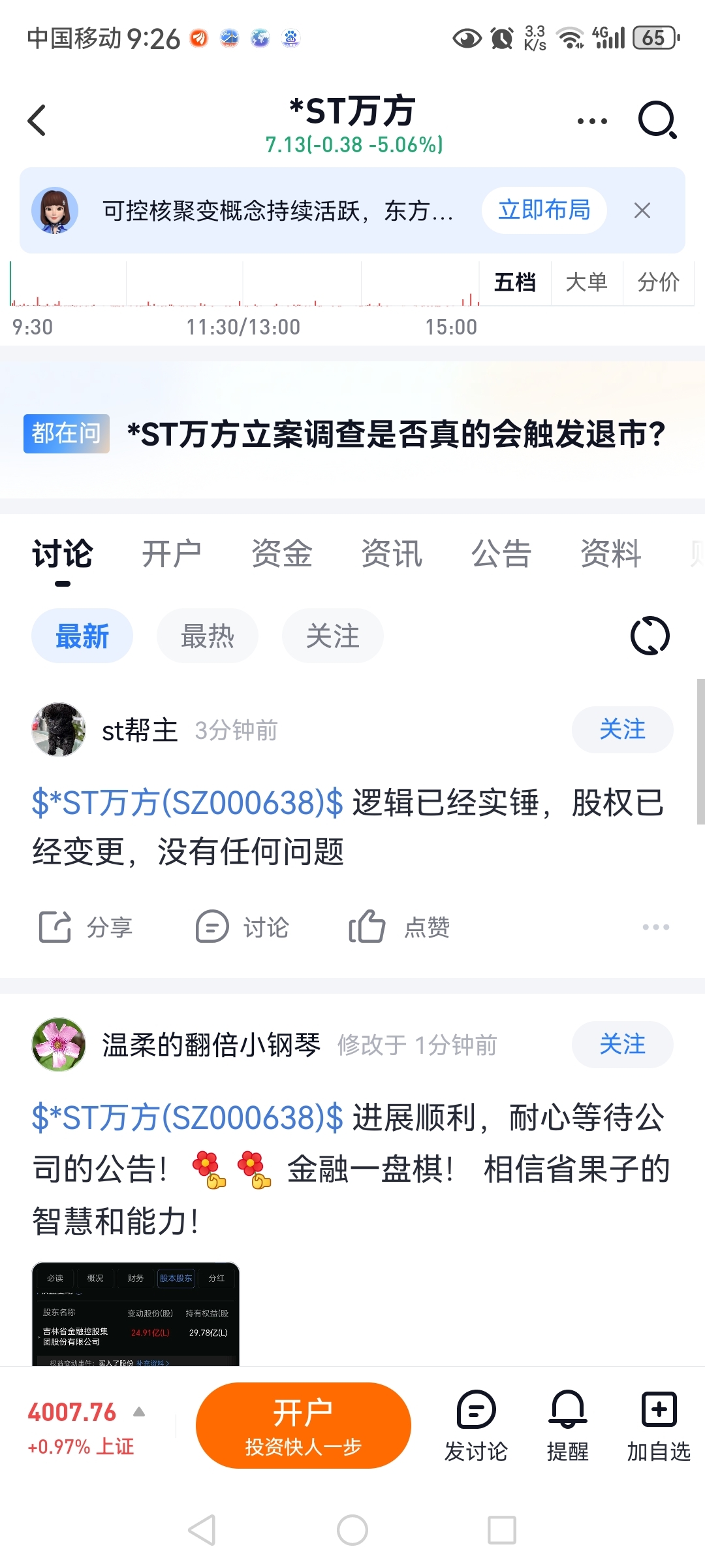 $*ST万方(SZ000638)$ 你们的帮助