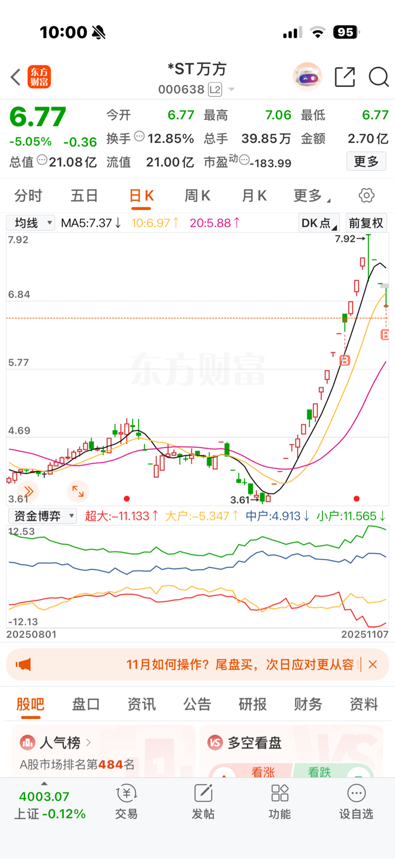 $*ST万方(SZ000638)$ 别人恐惧我贪婪,今日加仓