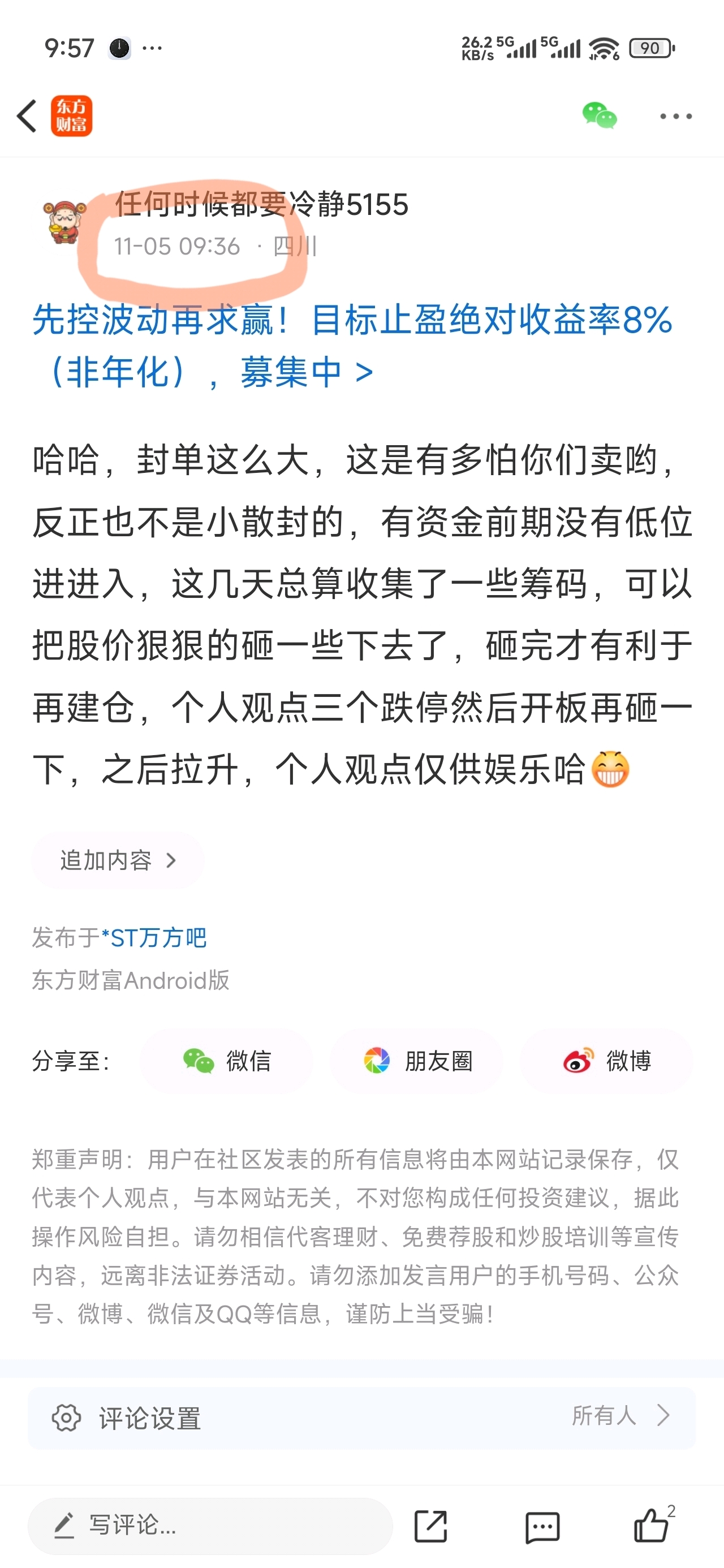 $*ST万方(SZ000638)$ 剧本前几天就写好发表了,剧情现在也完全是按照这么走了,就看看结局会不会按照剧本写的结局来演了