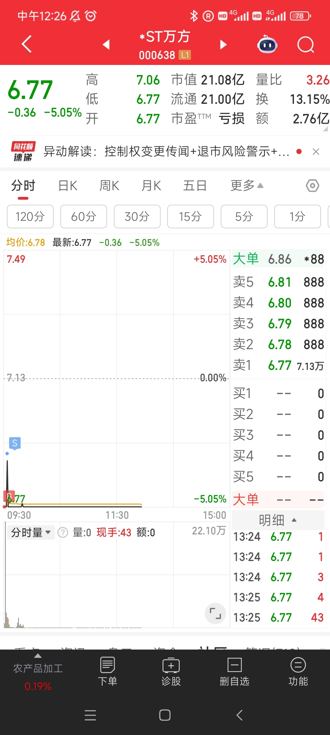 $*ST万方(SZ000638)$ 卖单全是888,大家一起翘板地天板发财