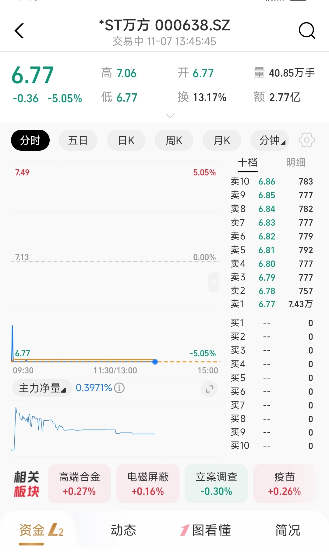 $*ST万方(SZ000638)$ 太得瑟了,着挂单777,主力在炫耀肌肉的,让大家快点交出筹码,快挂卖单