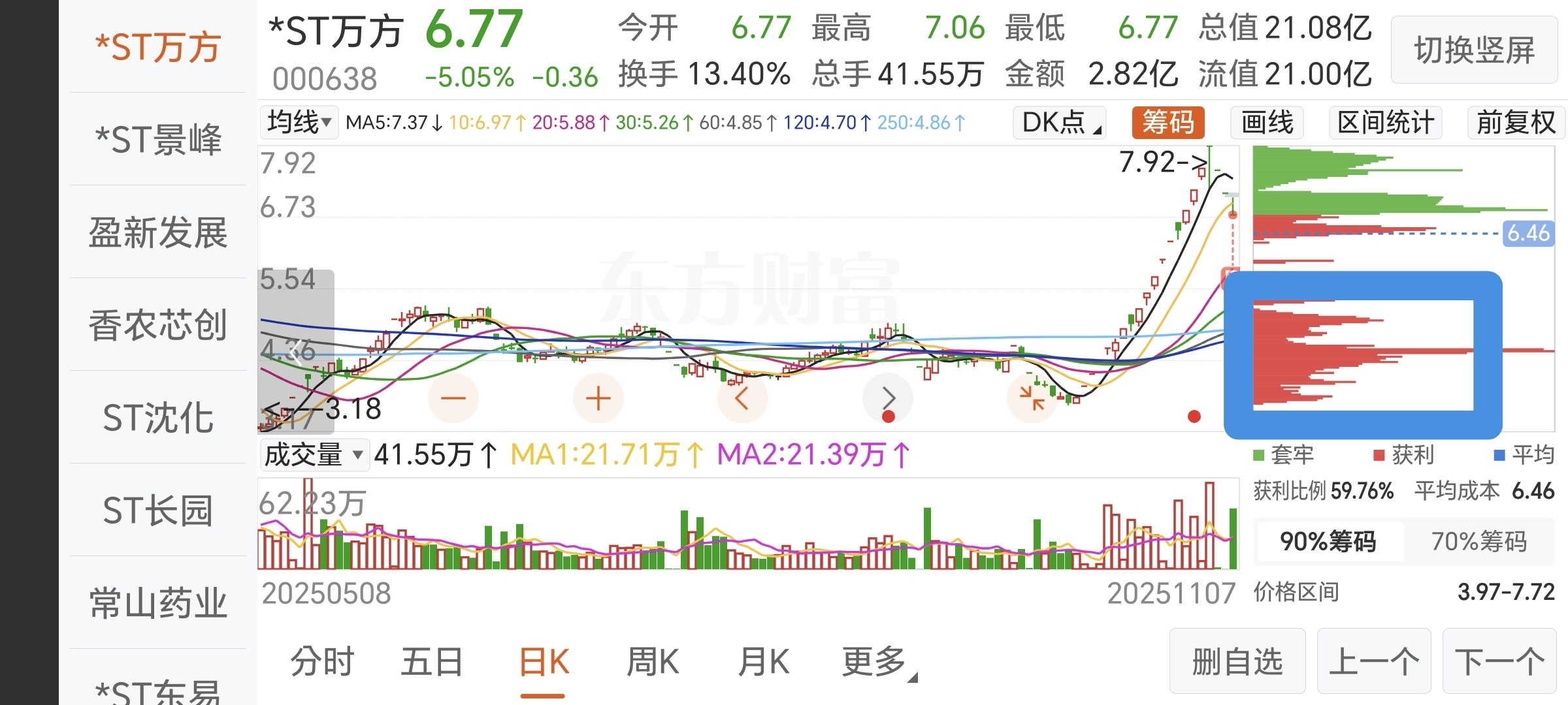 $*ST万方(SZ000638)$ 猫狗板来了,非常不错!买1.3.5都是净买入。下周一等着数钱吧。其实大家也没有必要慌慌张张的,何必这样连滚带爬的。晚上公告一来我看你们想挤都没门了!难道你们不看筹码分布图的吗?底部的获利筹码一动不动的。干嘛要慌慌张张的。
