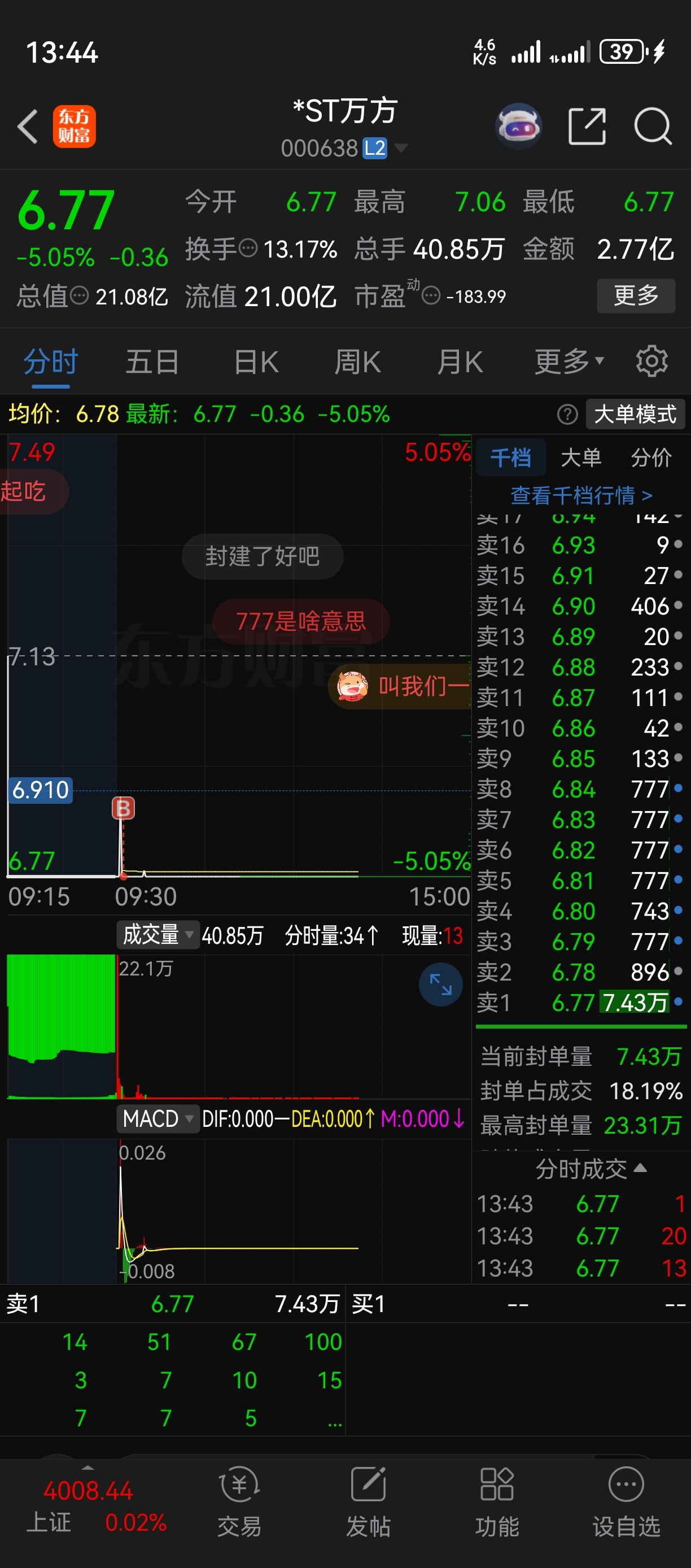 贷款加仓满仓的万方,已经开始亏钱,现在只能相信#低位挖掘的眼光了,万方一站到底是